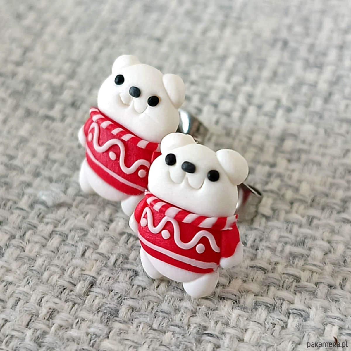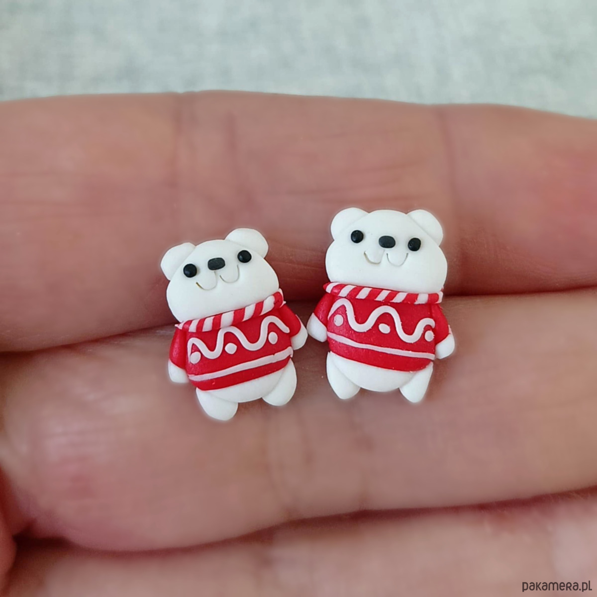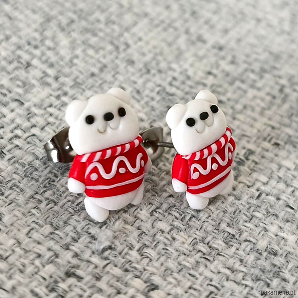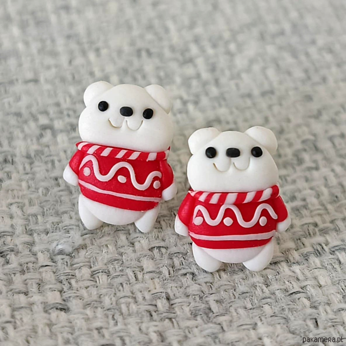 Słodkie kolczyki wykonane ręcznie z masy termoutwardzalnej Fimo. Wielkość kolczyków to 1,5 cm. Sztyfty wykonane są ze stali chirurgicznej. Kolczyki świetne na prezent.