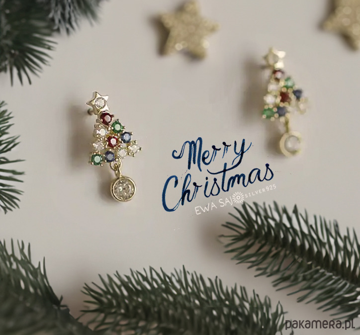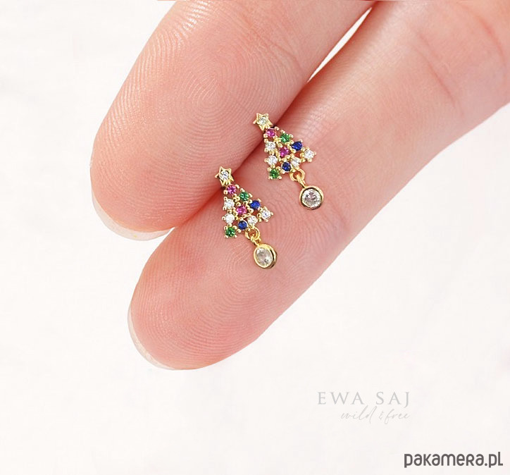 Delikatne, czarujące, drobne kolczyki mini wkręty z motywem choinki wykonane ze stali szlachetnej, długość kolczyka ok 15 mm. szerokość ok 7 mm