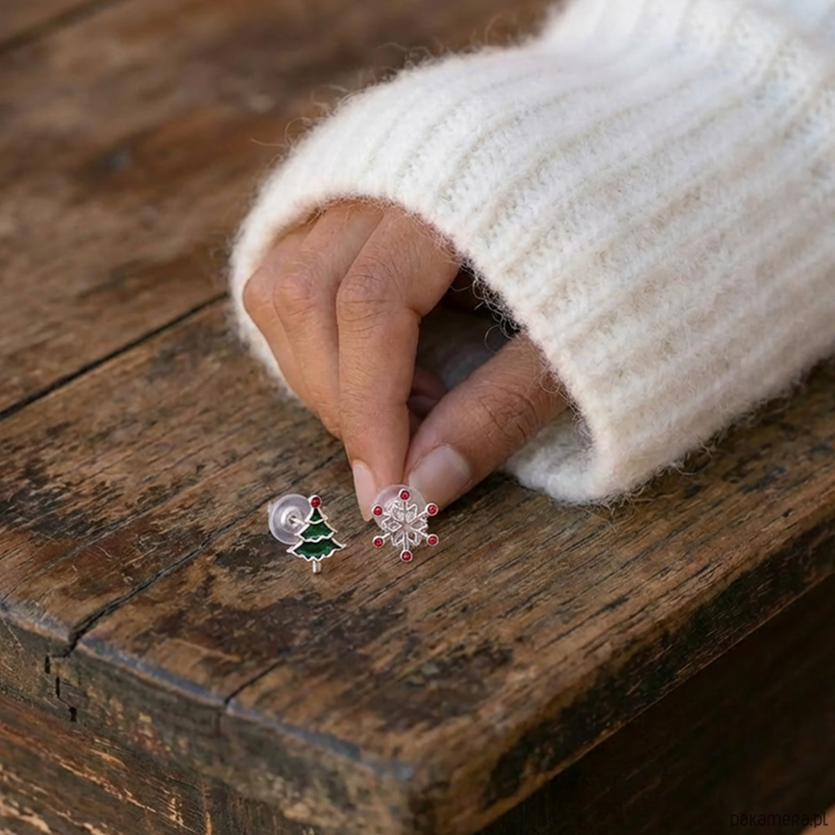 Wprowadź odrobinę magii świąt do swojej biżuterii dzięki tym uroczym, delikatnym kolczykom w kształcie choinki i śnieżynki. Mini wkręty zostały wykonane z wysokiej jakości stali szlachetnej, a subtelne detale pokryto kolorową emalią, co nadaje im wyjątkowego uroku i trwałości.