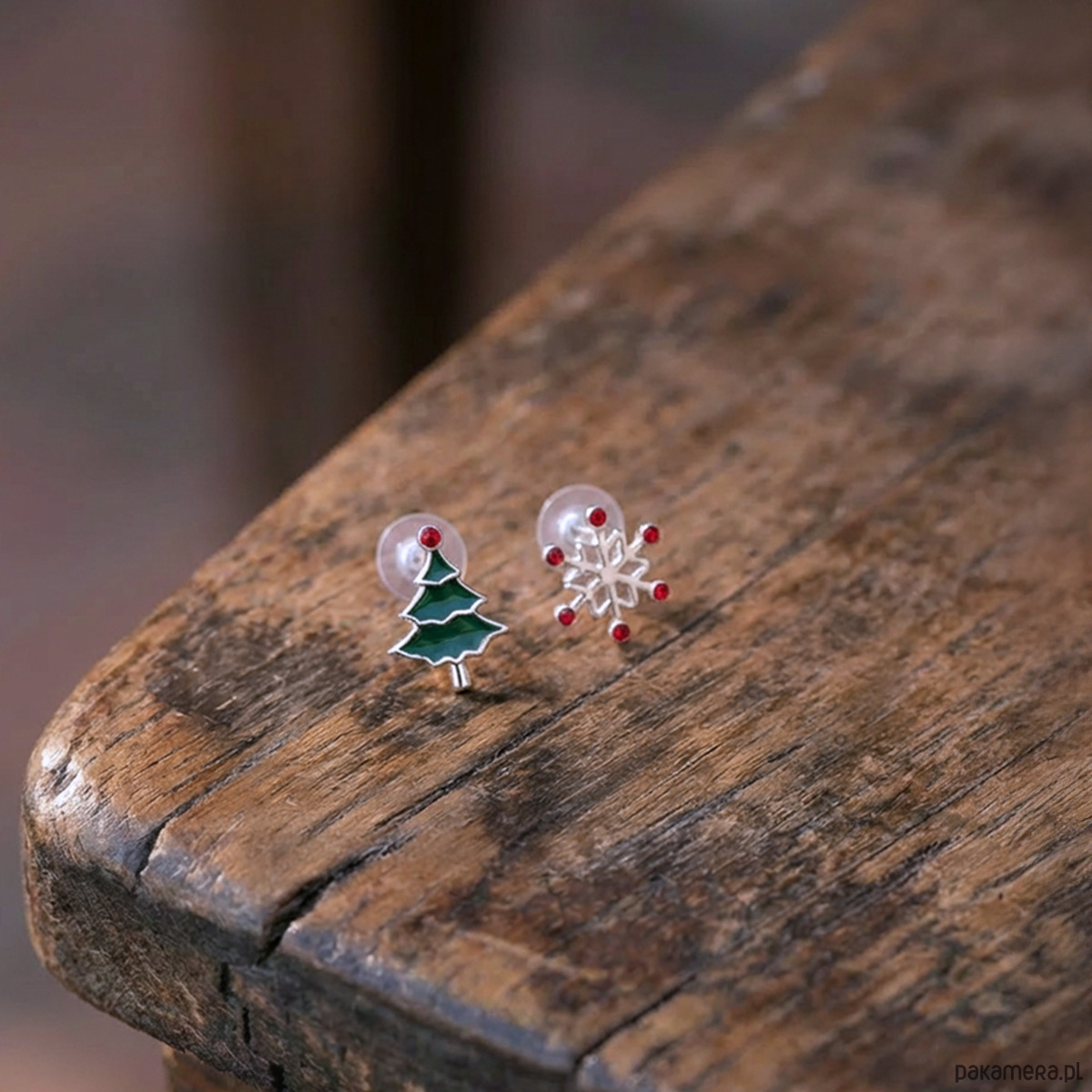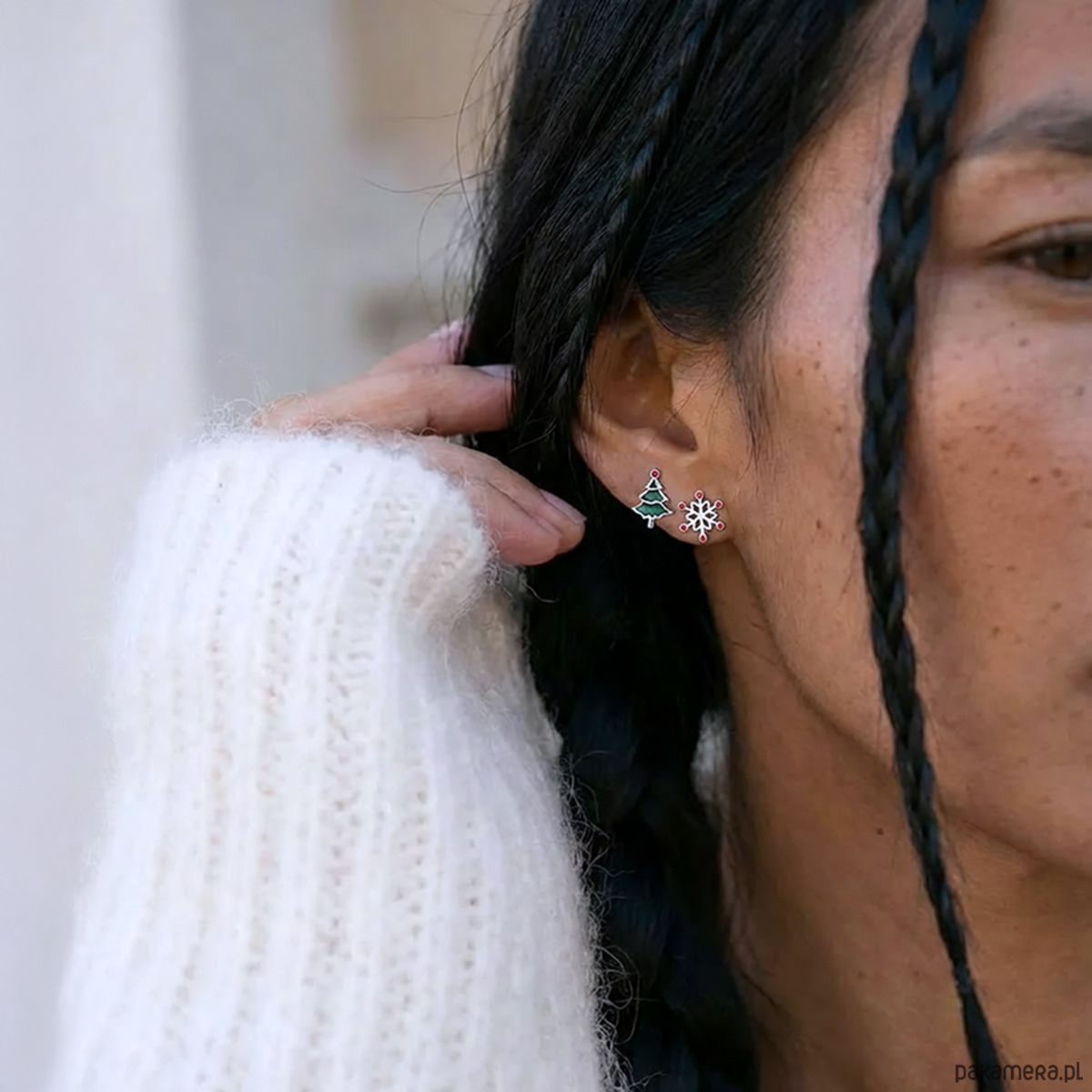 Wprowadź odrobinę magii świąt do swojej biżuterii dzięki tym uroczym, delikatnym kolczykom w kształcie choinki i śnieżynki. Mini wkręty zostały wykonane z wysokiej jakości stali szlachetnej, a subtelne detale pokryto kolorową emalią, co nadaje im wyjątkowego uroku i trwałości.