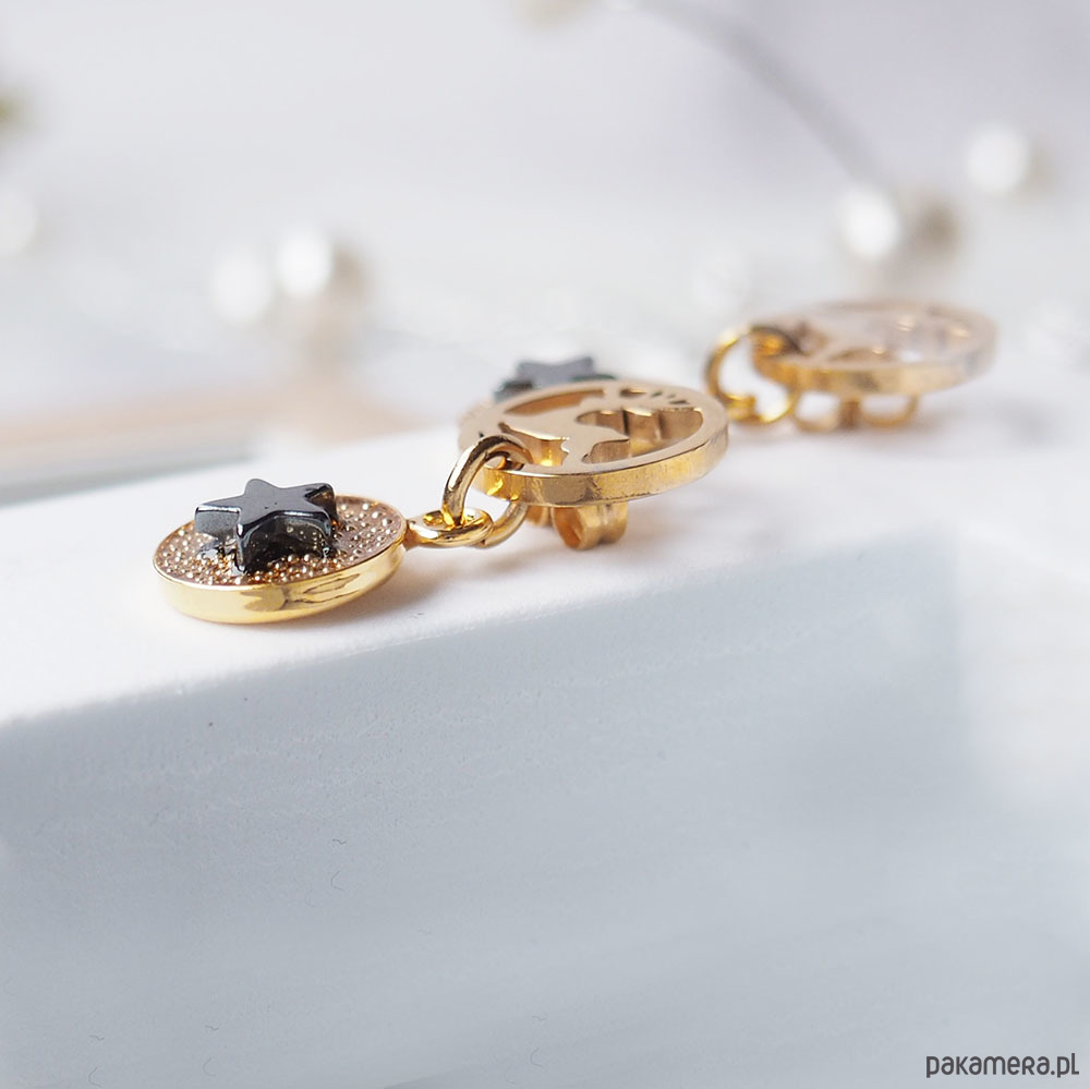 • zawieszki z gwiazdkami z hematytu w żywicy- srebro pokryte 24 K złotem