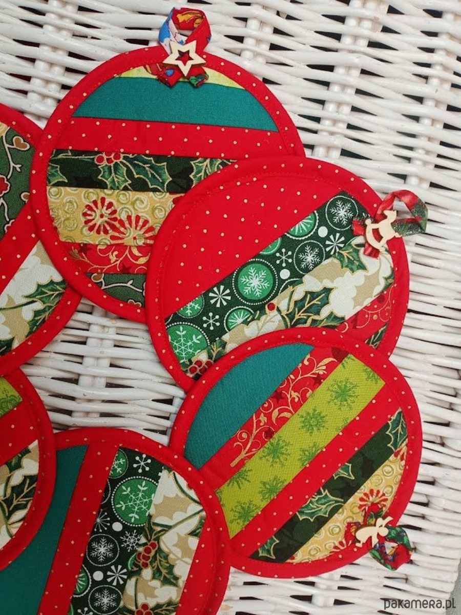 Podkładka pod kubek wykonana z bawełnianych tkanin patchworkowych. Usztywnione ..