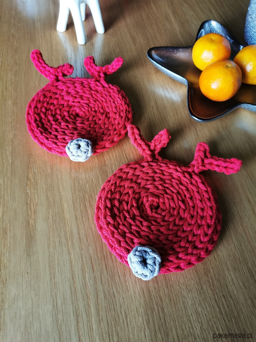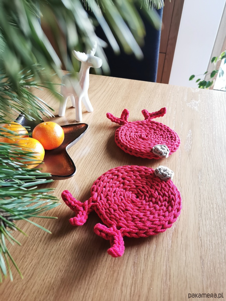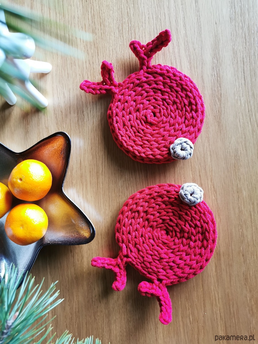Wprowadź do swojego domu odrobinę świątecznej magii dzięki uroczym podkładkom pod kubek w kształcie renifera. Każdy renifer jest starannie wykonany z miękkiego bawełnianego sznurka, dzięki czemu nie tylko pięknie zdobi świąteczny stół, ale też doskonale chroni jego powierzchnię przed gorącymi kubkami, szklankami i zimowymi napojami.