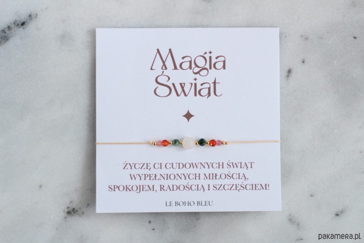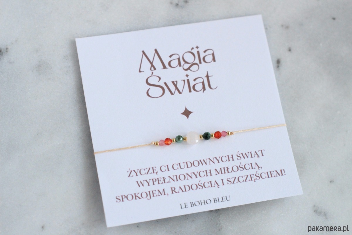 Każda bransoletka przytwierdzona jest do ozdobnego kartonika z życzeniami.