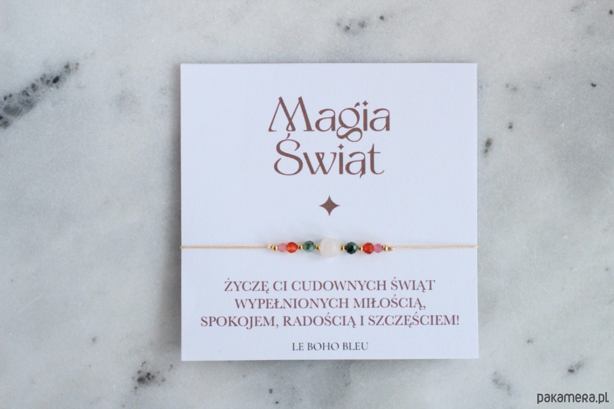 Delikatna bransoletka z życzeniami pod postacią kamieni naturalnych - to pewnego rodzaju amulet, który wspiera w miłości, spokoju, radości i szczęściu.