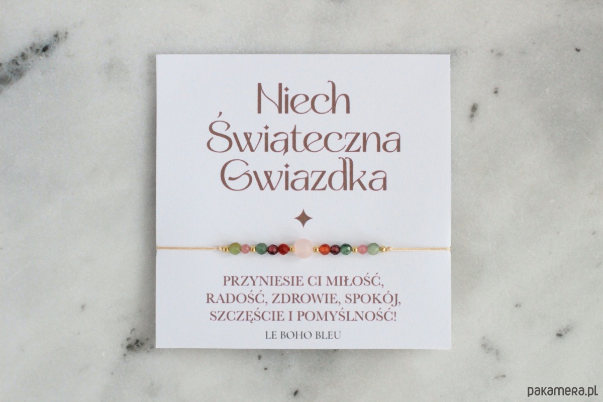 Delikatna bransoletka z życzeniami pod postacią kamieni naturalnych - to pewnego rodzaju amulet, który wspiera w miłości, radości, zdrowiu, spokoju, szczęściu i pomyślności.