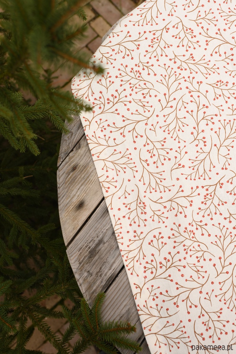 Bieżnik ze świątecznym wzorem łączy w sobie klasykę z delikatnym, domowym urokiem. Jego naturalny, bawełniany materiał w kremowym odcieniu wprowadza do wnętrza atmosferę ciepła i spokoju, stając się doskonałym tłem zarówno dla codziennych chwil, jak i świątecznych celebracji.
