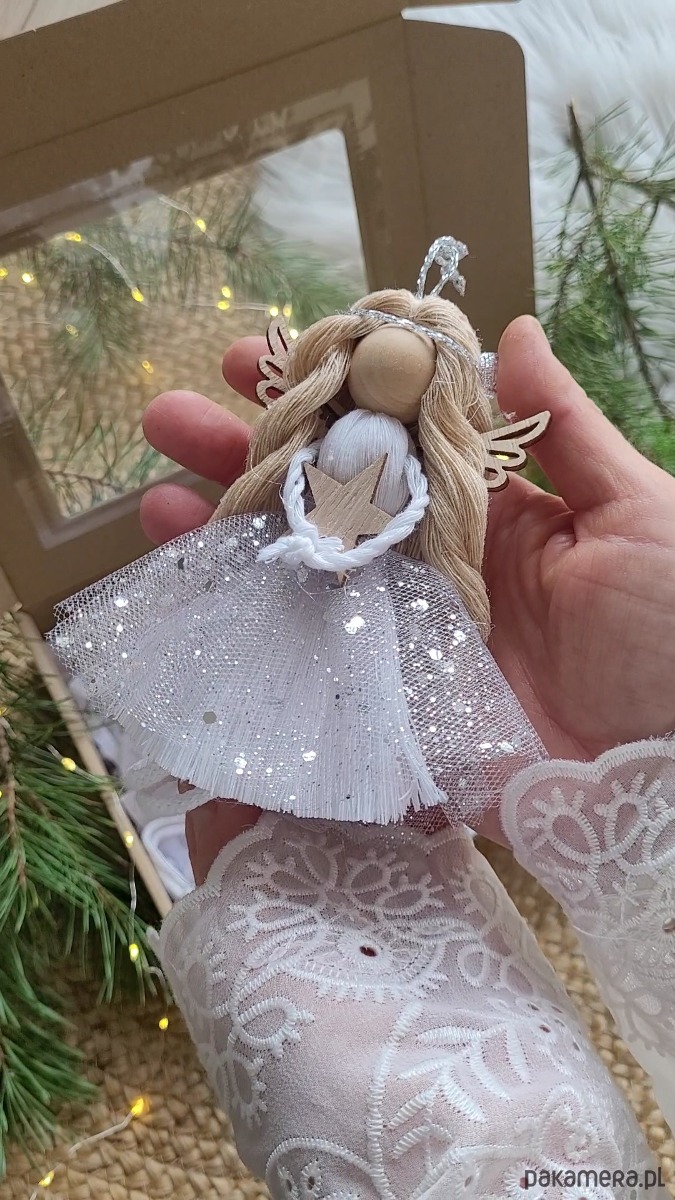 Makramowe aniołki świąteczne – białe, srebrne lub mix