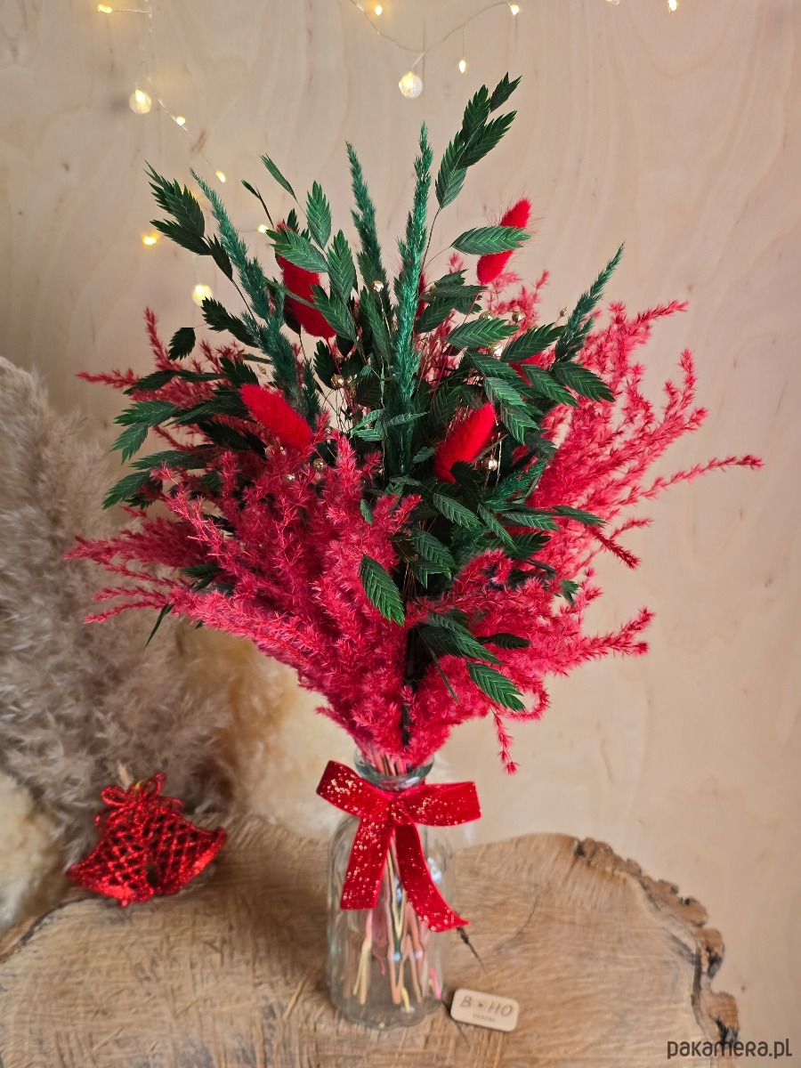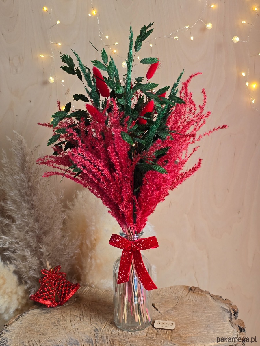 🎄 Świąteczny bukiet z suszonych kwiatów w szklanym wazonie - dekoracja do domu i na prezent