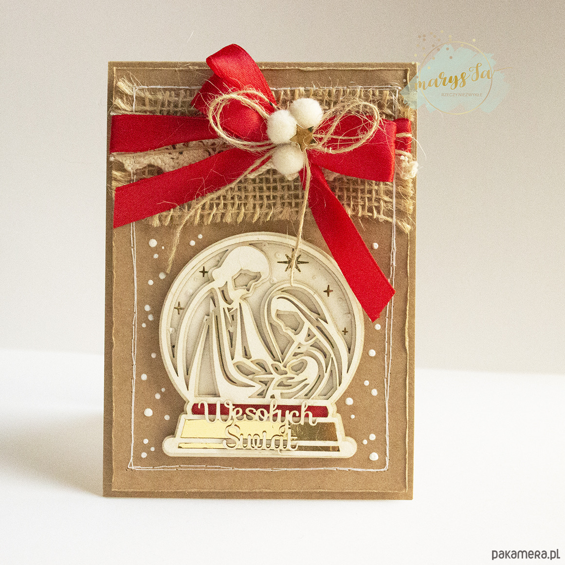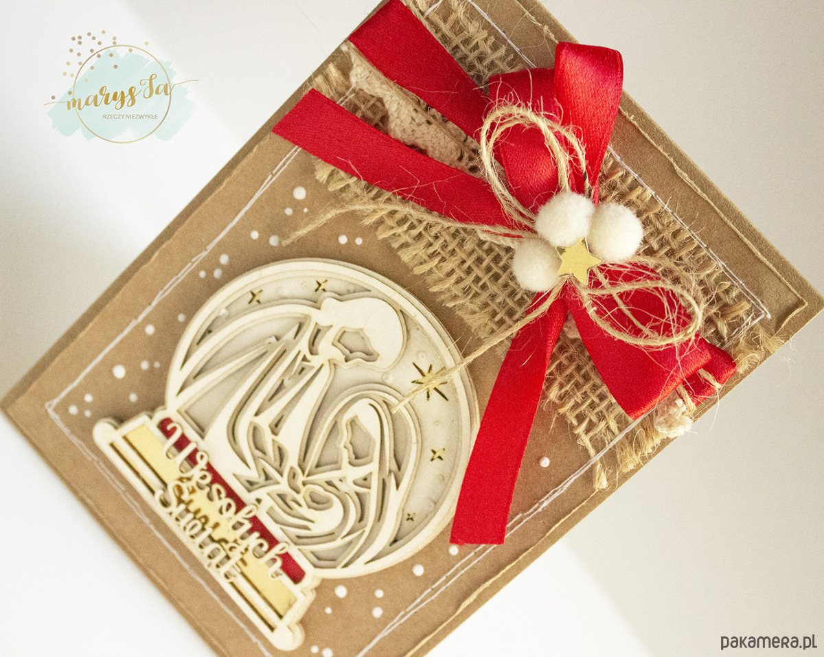 Urocza karta świąteczna - wykonana z dbałością o najdrobniejszy szczegół, z najwyższej jakości materiałów i dodatków w tym papieru kraft oraz tekturowych ozdób.