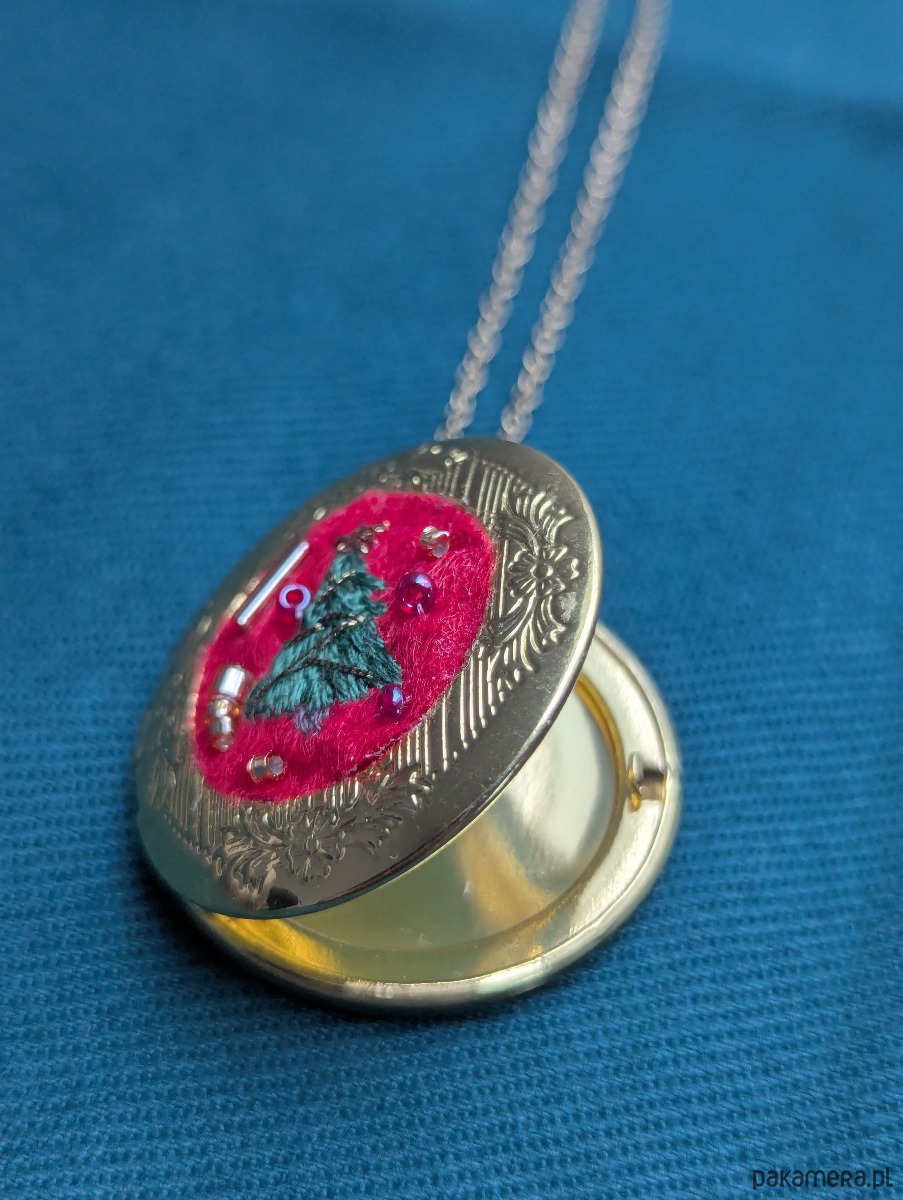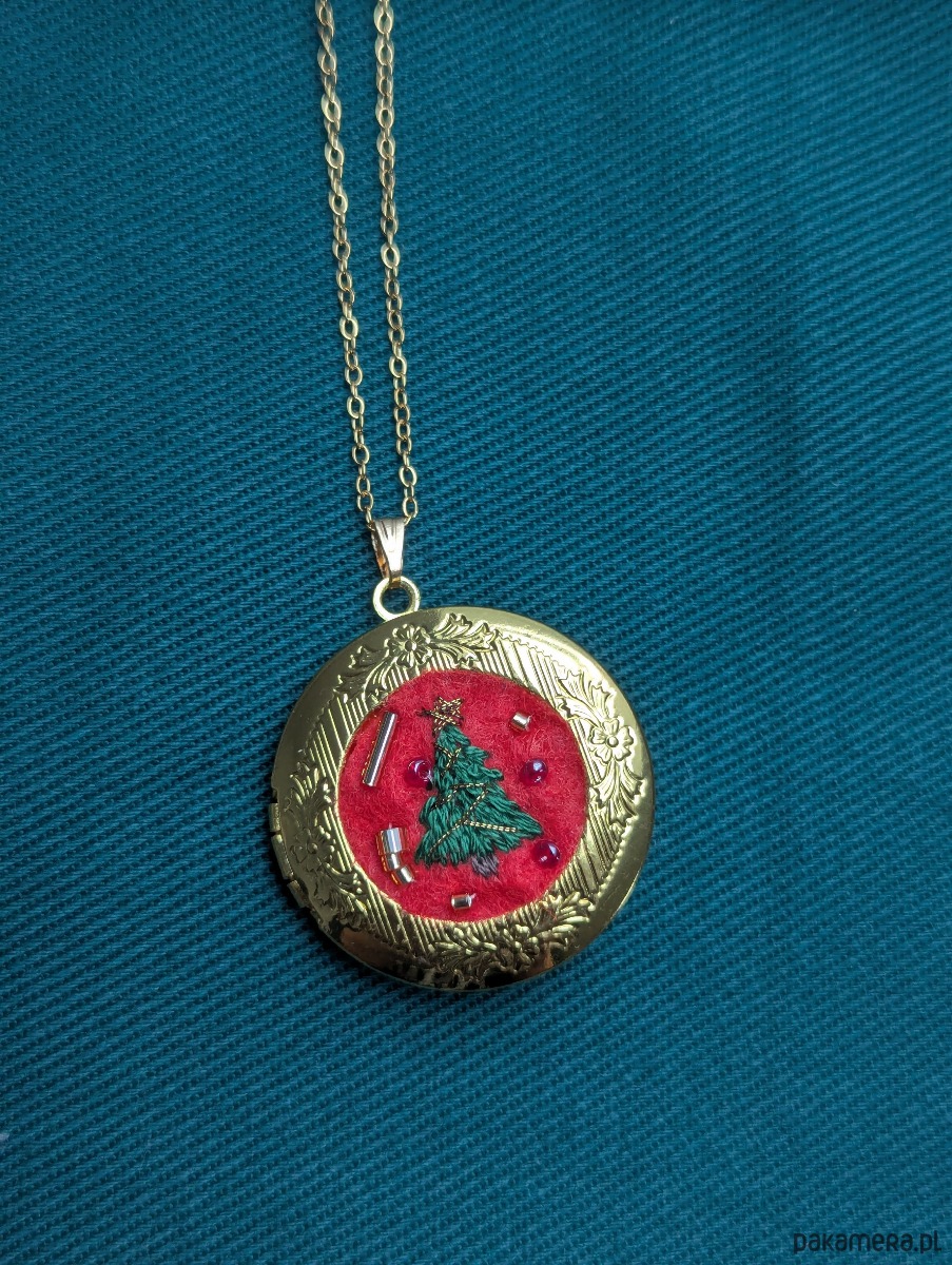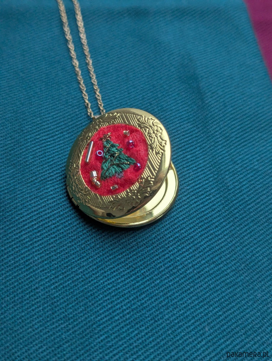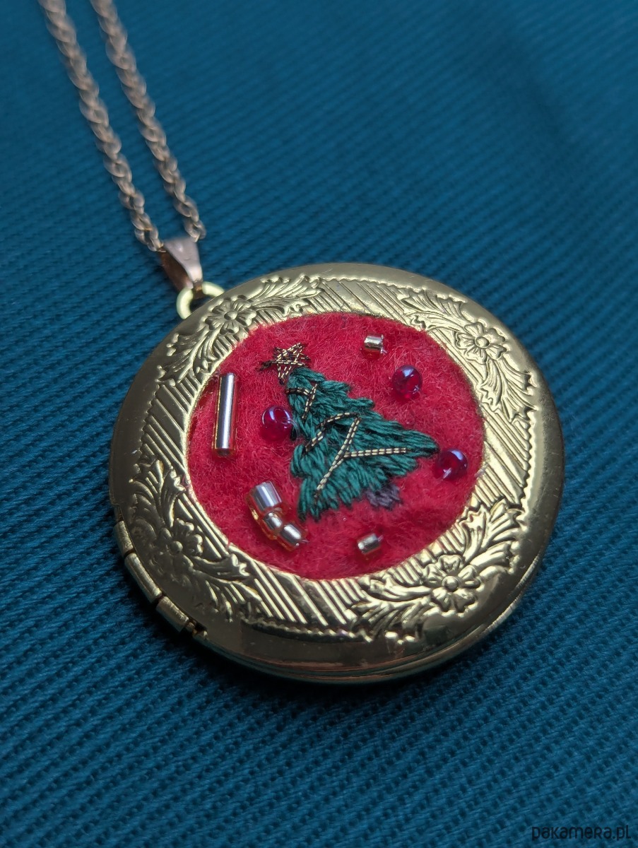 Świąteczny naszyjnik - otwierany sekretnik choinka