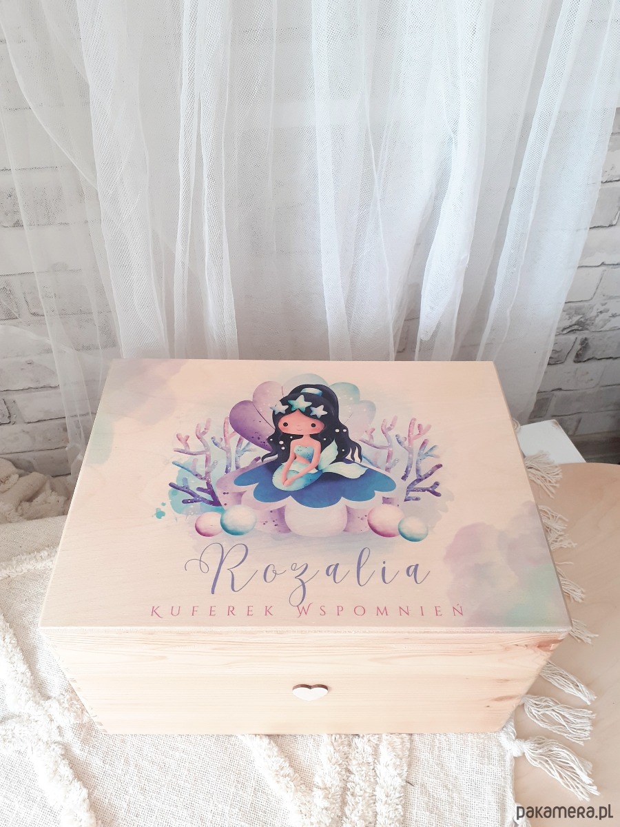 Świąteczny prezent dla dziecka. Piękny kuferek wspomnień z grafiką syrenki. Przykuwa wzrok i zachwyca.