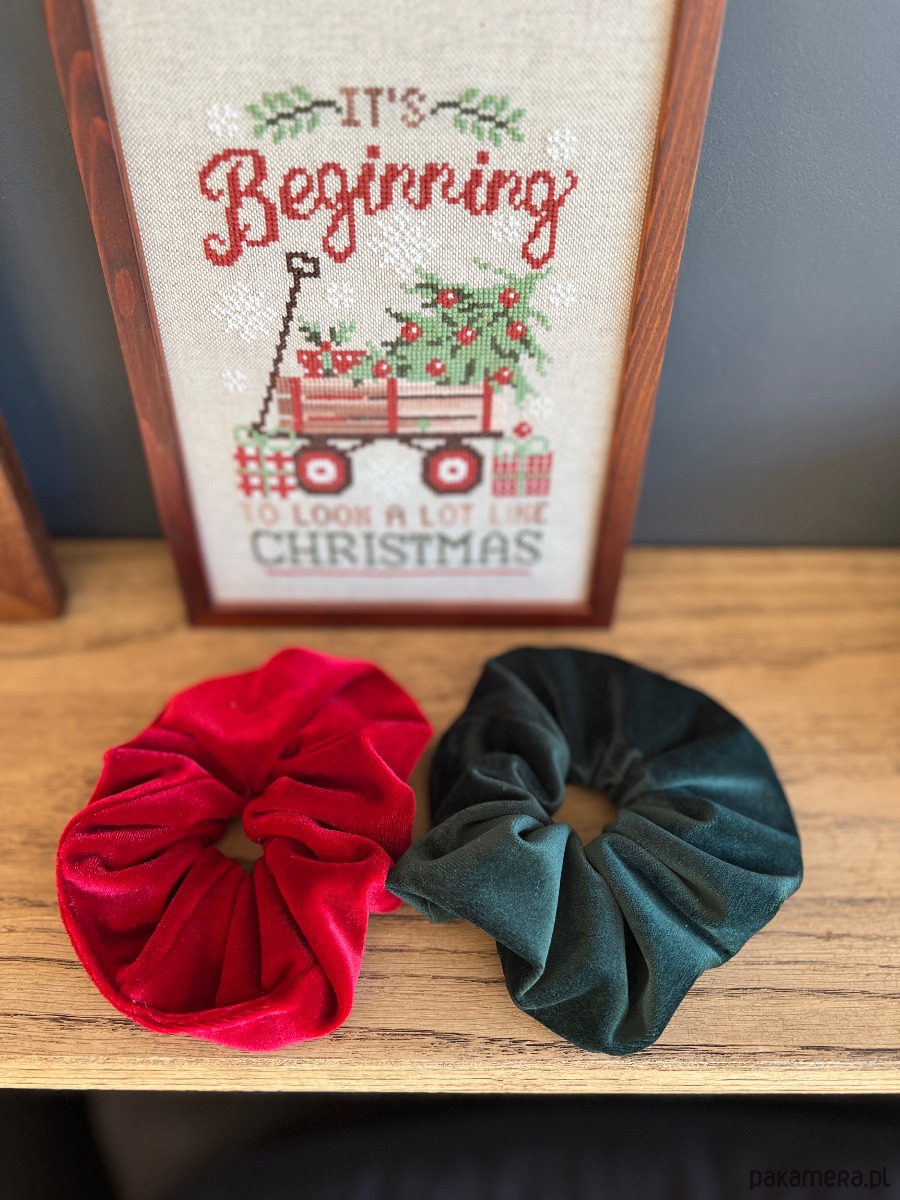 Świąteczny scrunchie velvet 2 aksamitne gumki do włosów