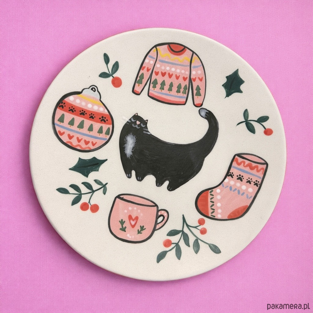 Świąteczny talerz z kotkiem, świąteczne wzory