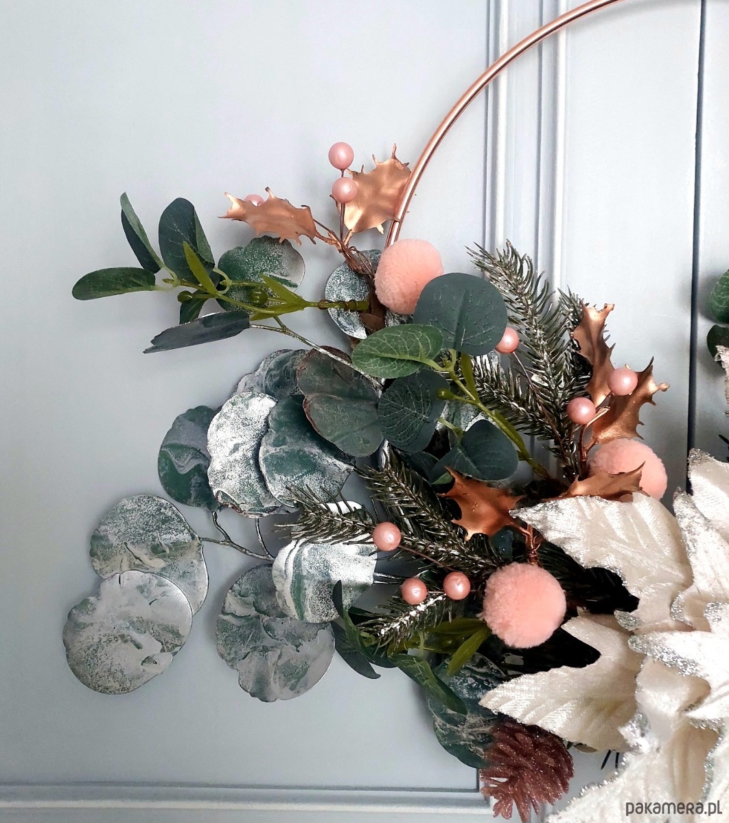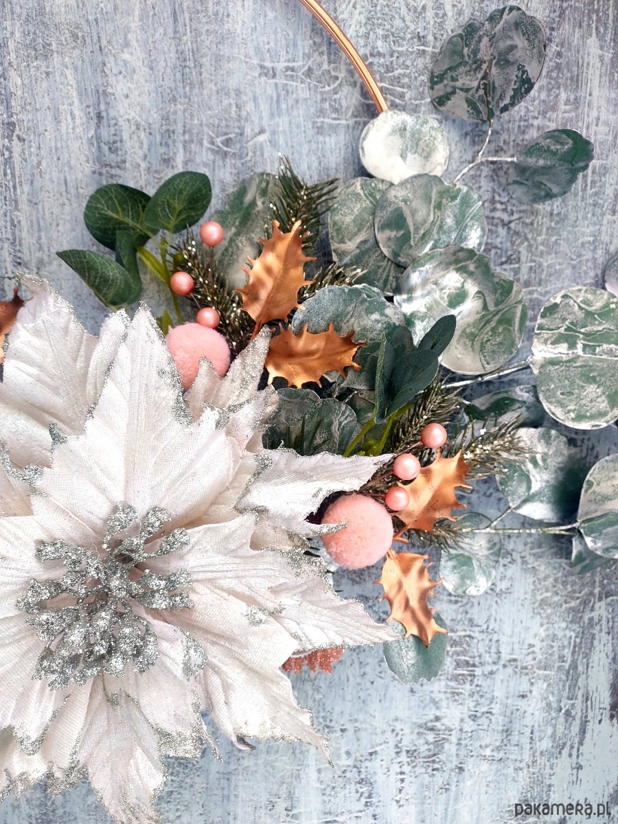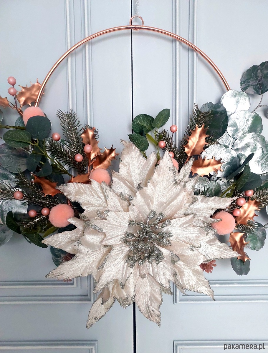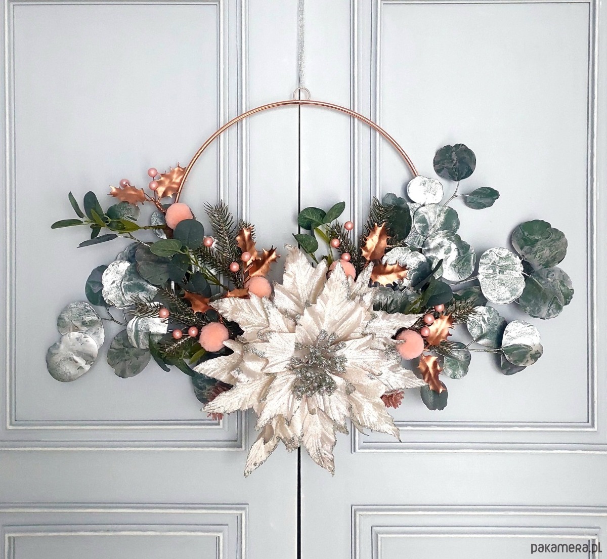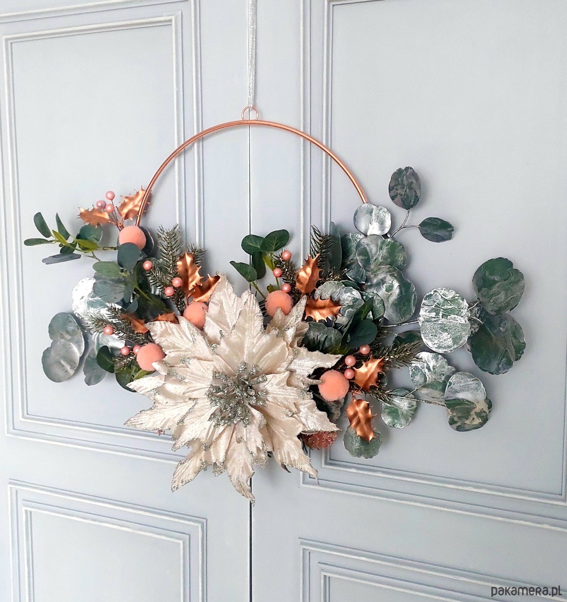 Jeśli byłeś w tym roku grzeczny i chcesz mieć pewność, że Mikołaj do Ciebie trafi, koniecznie daj mu jakiś znak! Z pewnością świetnym drogowskazem będzie dla niego ten oto świąteczny wianek powieszony np. na drzwiach :) Wianek na metalowej obręczy został udekorowany kompozycją z elementów w iście bożonarodzeniowym klimacie ✨ Średnica metalowego koła to 30 cm, całości ok 60x40 cm