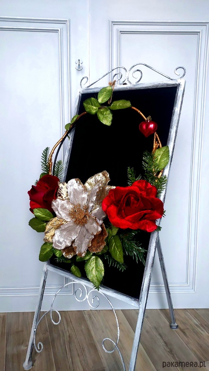 Jeśli byłeś w tym roku grzeczny i chcesz mieć pewność, że Mikołaj do Ciebie trafi, koniecznie daj mu jakiś znak! Z pewnością świetnym drogowskazem będzie dla niego ten oto świąteczny wianek powieszony np. na drzwiach :) Wianek na metalowej obręczy został udekorowany kompozycją z elementów w iście bożonarodzeniowym klimacie ✨ Średnica metalowego koła to 30 cm, całości ok 40x50 cm