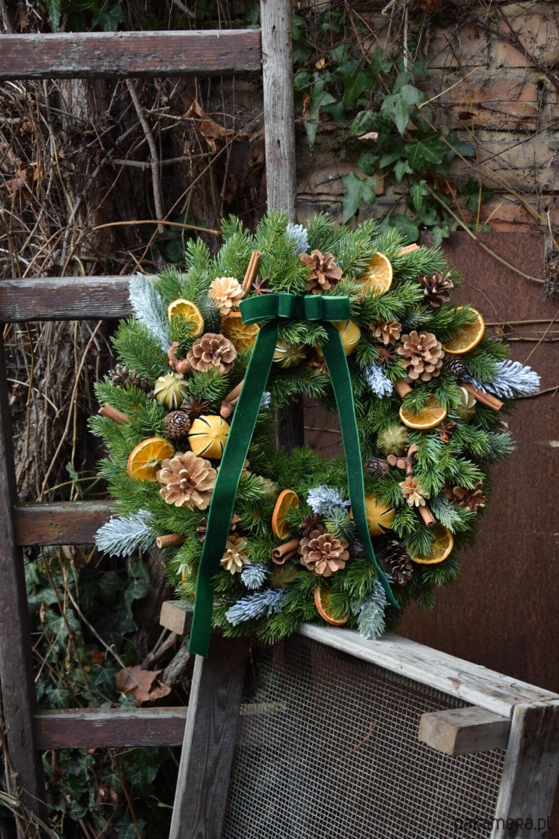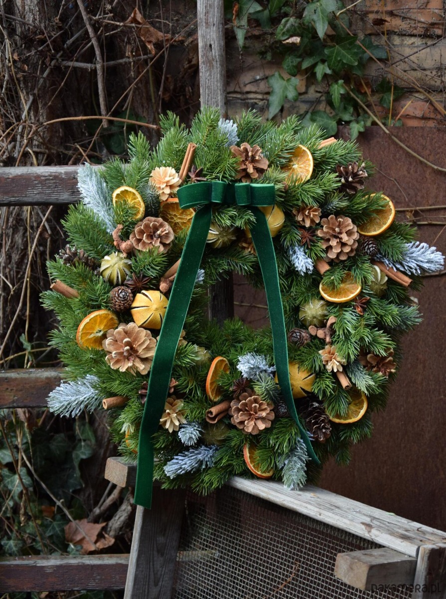 Świąteczny Wieniec z Naturalnym Akcentem - Ręcznie Dekorowany