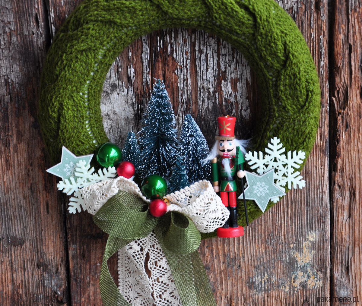 Piękny i wyjątkowy świateczny wianek w dzierganym sweterku ; średnica ok.30cm; wianek przystosowany do powieszenia na drzwiach, ścianie lub w oknie; wianki występują w pojedynczych egzemplarzach, nie ma możliwości powtórzenia wzoru; zapraszam serdecznie