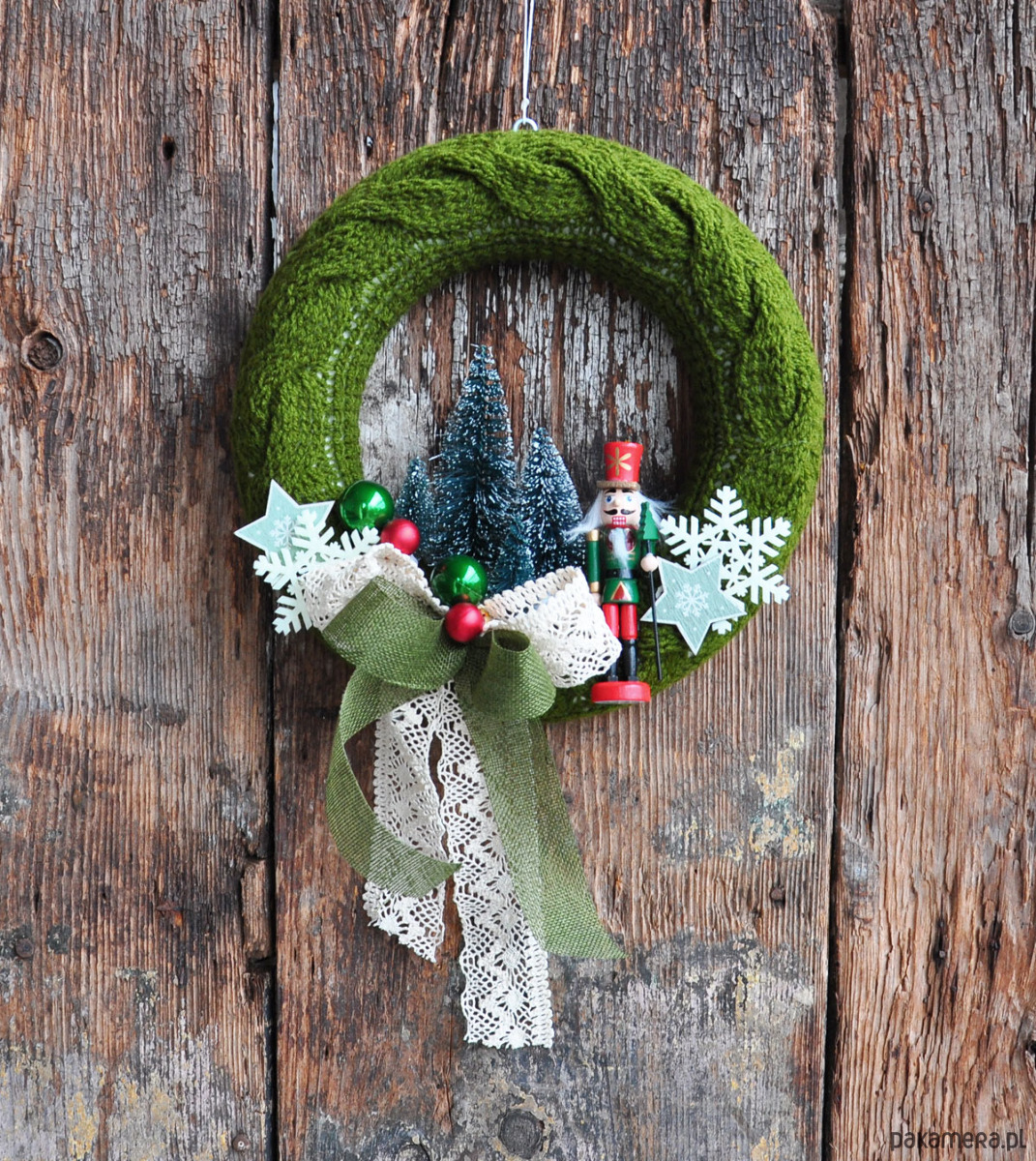 Piękny i wyjątkowy świateczny wianek w dzierganym sweterku ; średnica ok.30cm; wianek przystosowany do powieszenia na drzwiach, ścianie lub w oknie; wianki występują w pojedynczych egzemplarzach, nie ma możliwości powtórzenia wzoru; zapraszam serdecznie