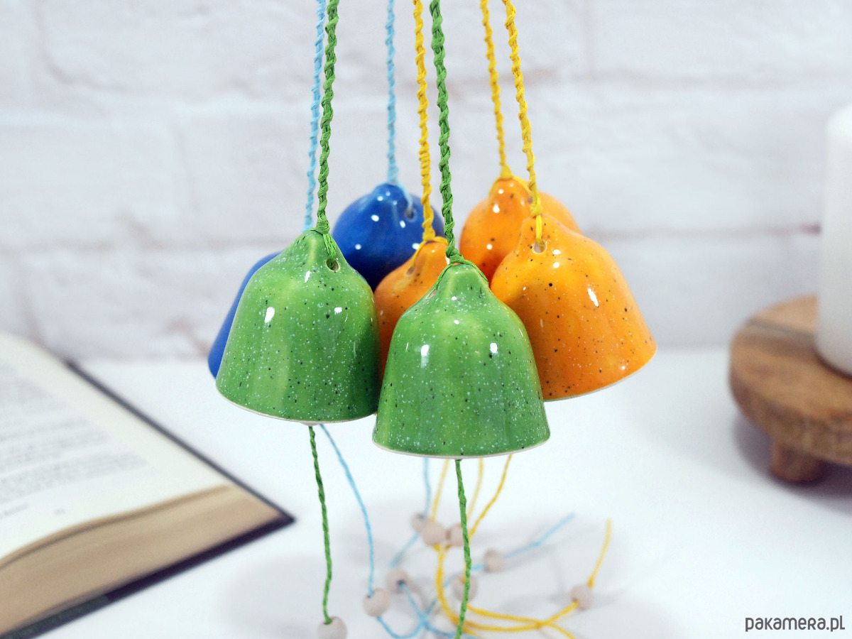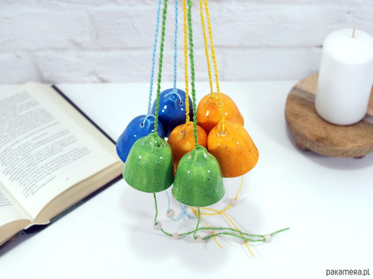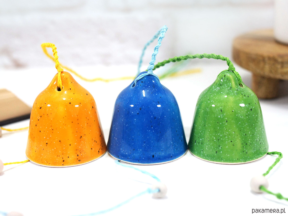 Zestaw zawiera 3 ręcznie robione i malowane, ceramiczne dzwonki.