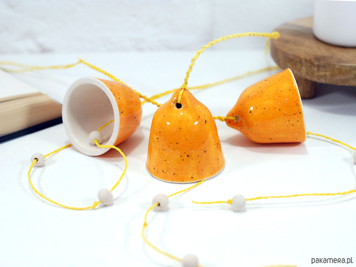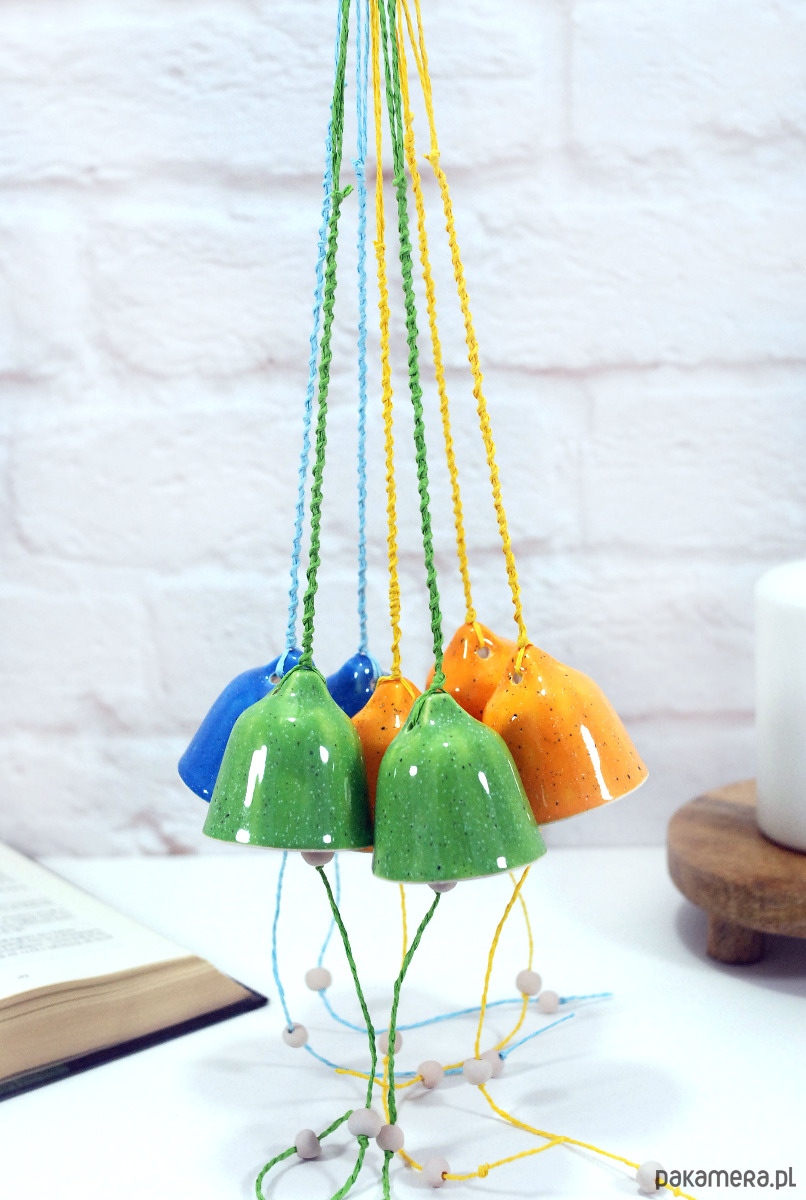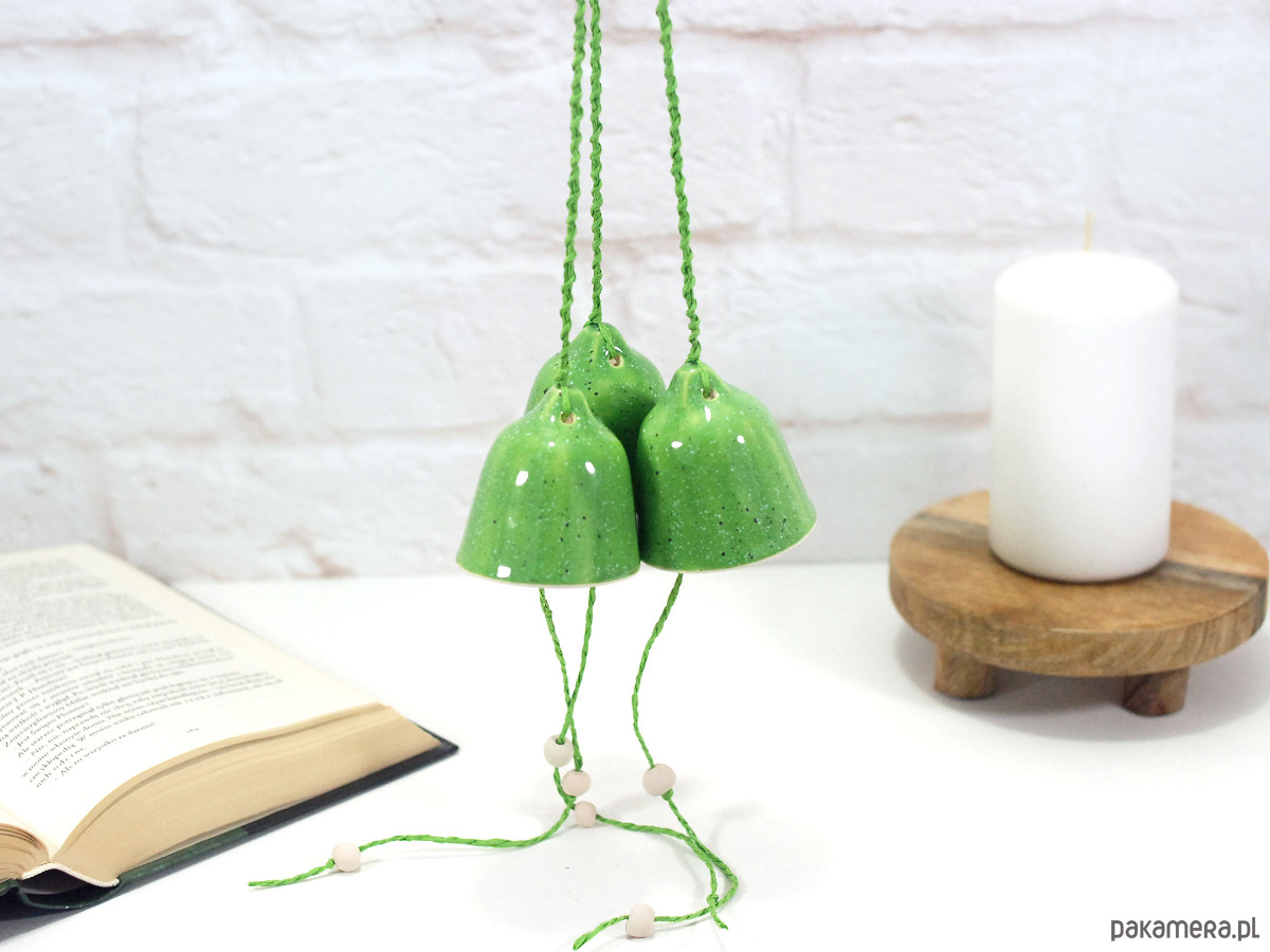 Zestaw zawiera 3 ręcznie robione i malowane, ceramiczne dzwonki.