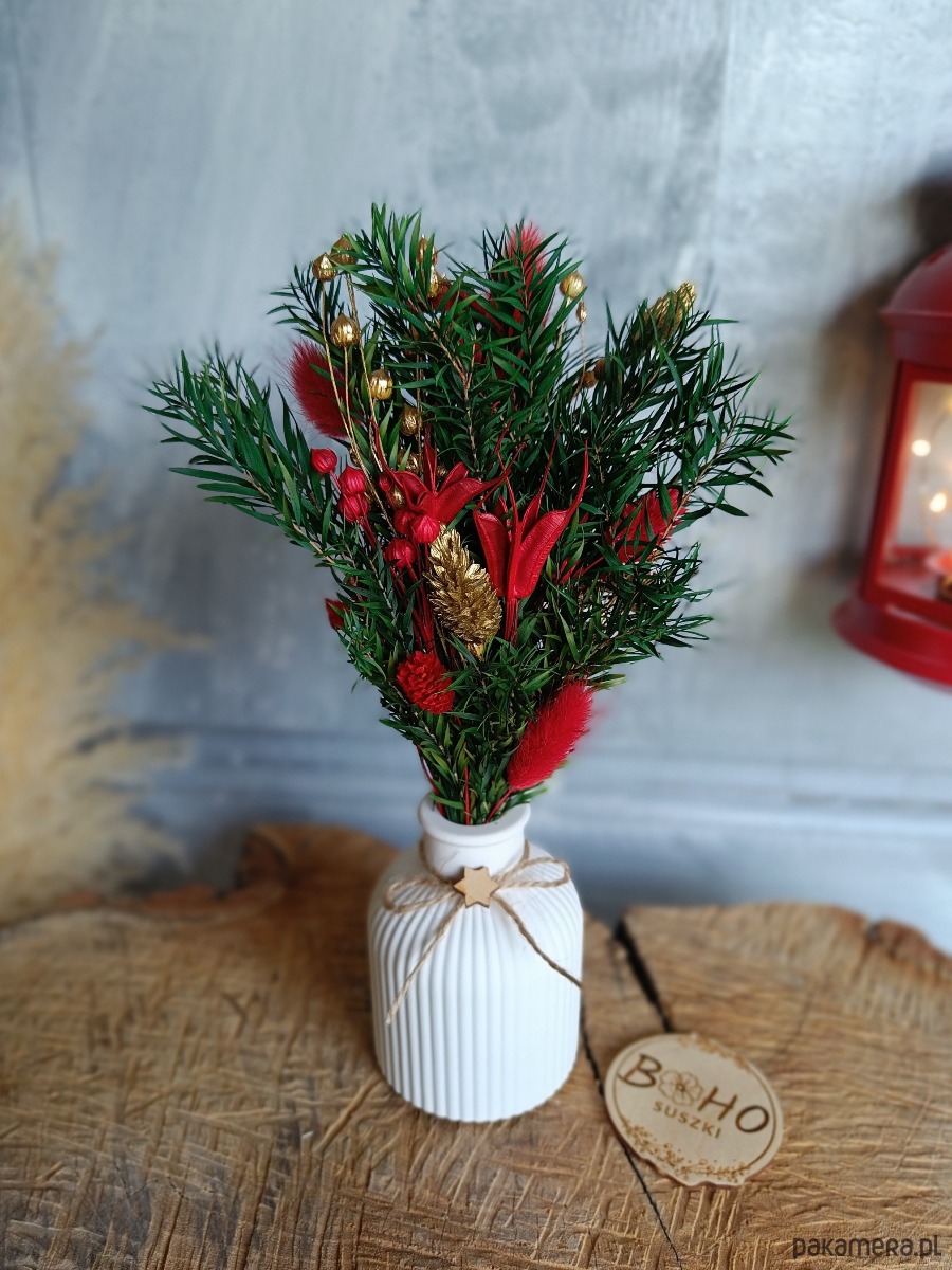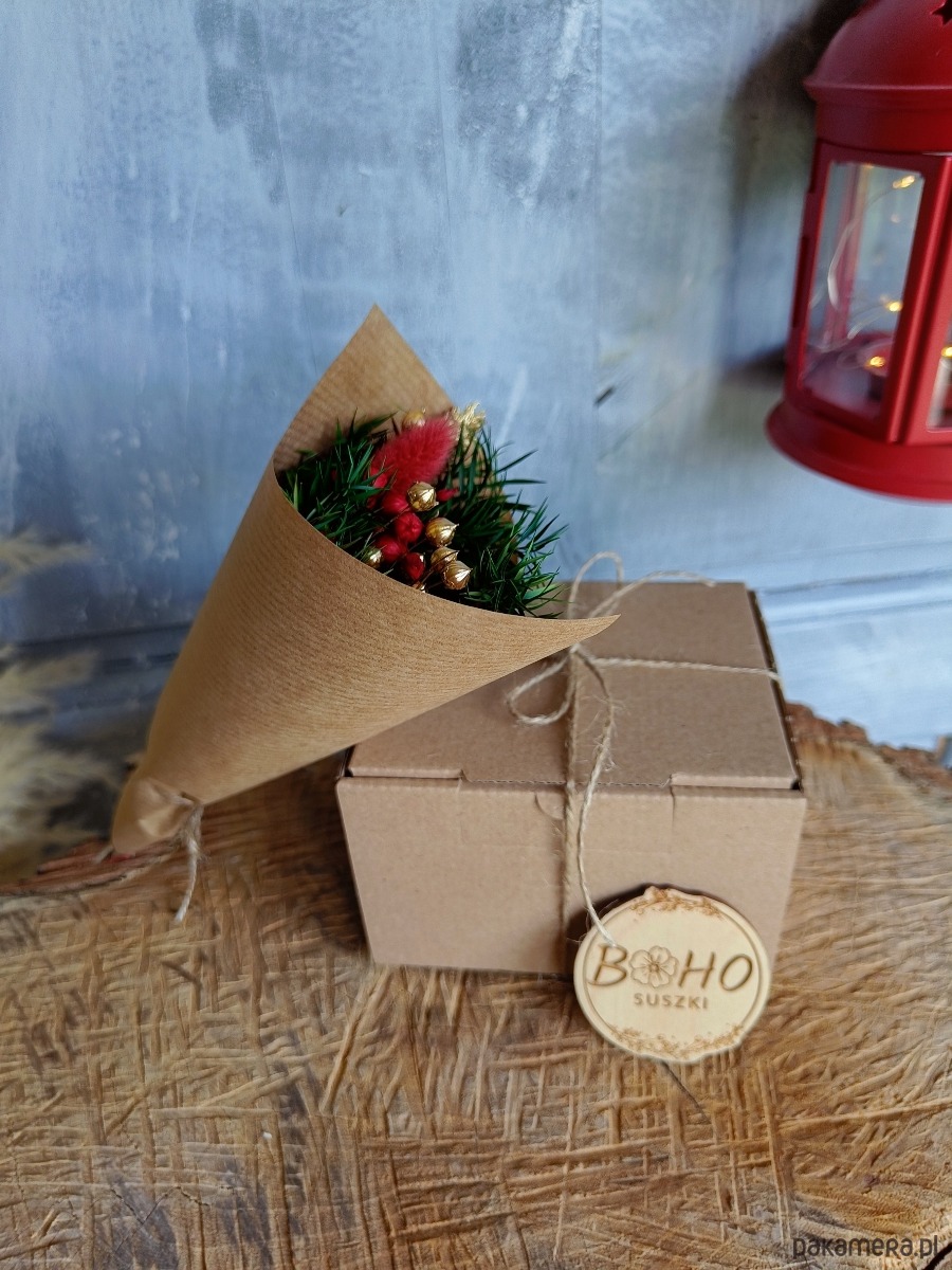 🎄 Świąteczny zestaw upominkowy - mały wazon z bukietem suszonych kwiatów