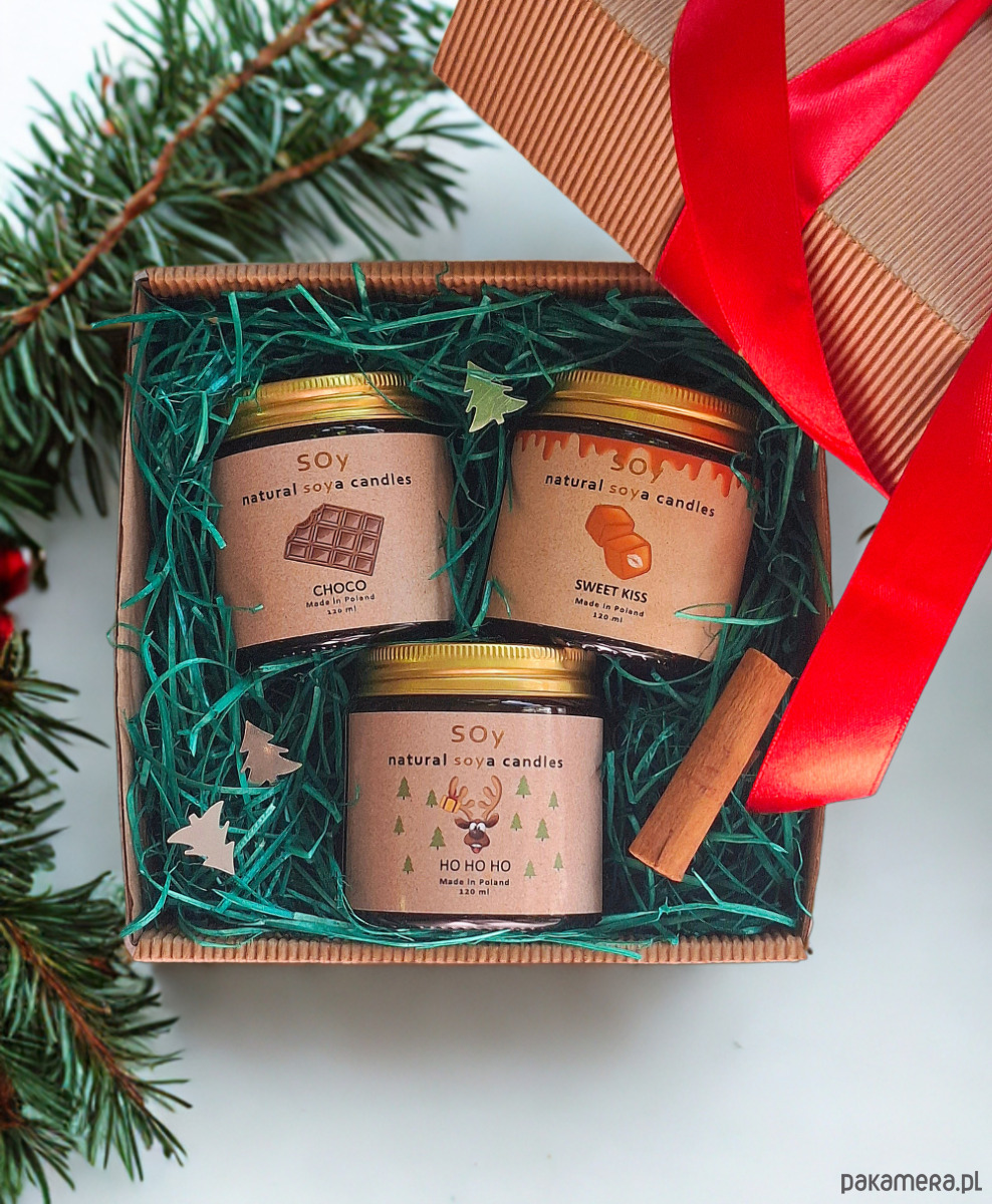 Świąteczny zestaw ze świecami sojowymi