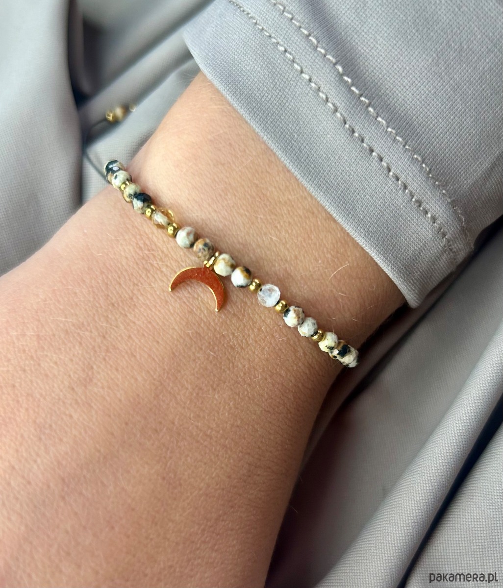 Każdy detal – od złotych przekładek ze stali chirurgicznej po półksiężycową zawieszkę – symbolizuje cykl przemiany, intuicję i wewnętrzną siłę.