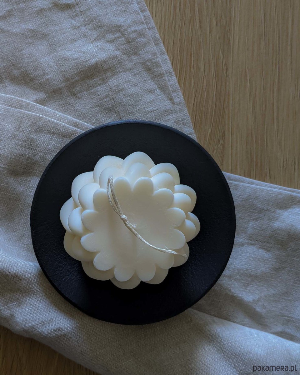 Świeca odlana ręcznie w pracowni pod Wrocławiem. Skład: wosk sojowy, knot bawełniany. Wymiary: wysokość 9cm, średnica 9cm.