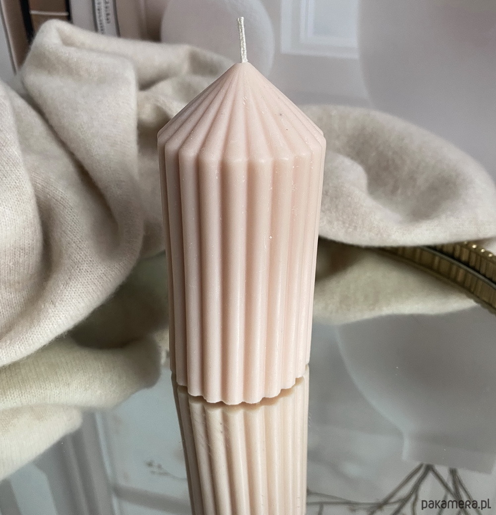 Nowoczesna świeca w kształcie walca to połączenie prostoty i designerskiej formy. Rzeźbiarska struktura sprawia że świetnie prezentuje się jako dekoracja- sama w sobie przyciąga wzrok i dodaje charakteru każdej przestrzeni