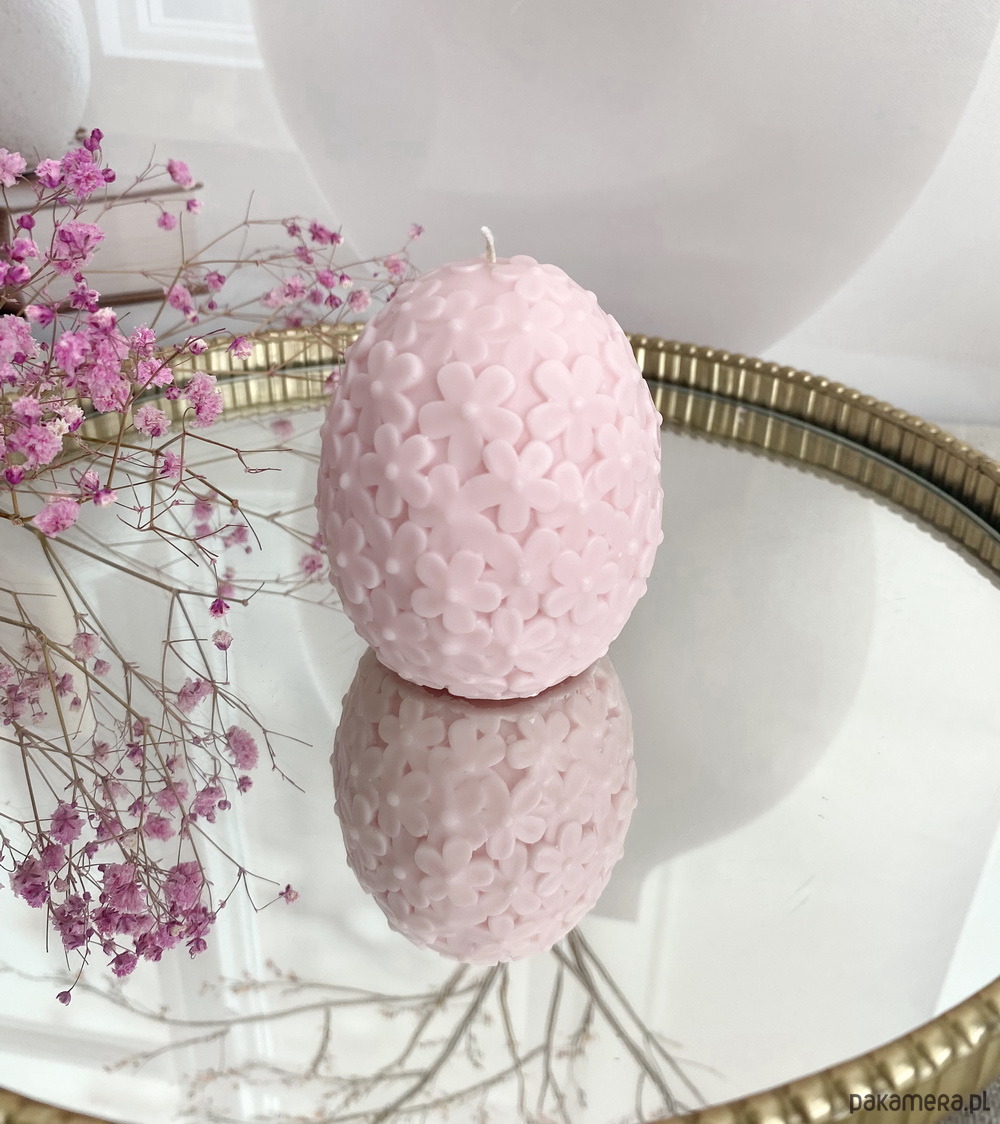 Świeca ekologiczna sojowa dekoracyjna jajko wielkanocne jasny róż