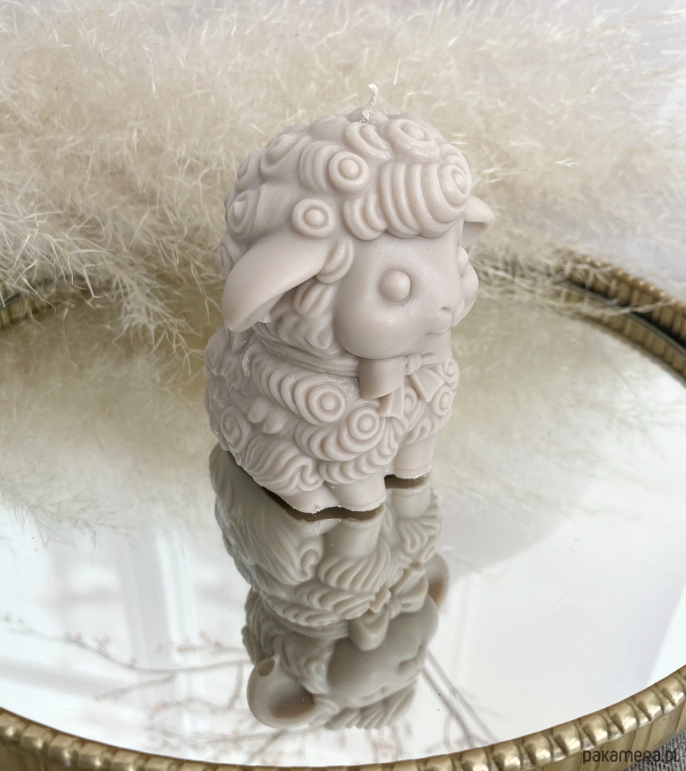Starannie odwzorowane detale- kręcona wełna, delikatne uszka i łagodne rysy- sprawiają, że świeca prezentuje się niezwykle przytulnie i elegancko