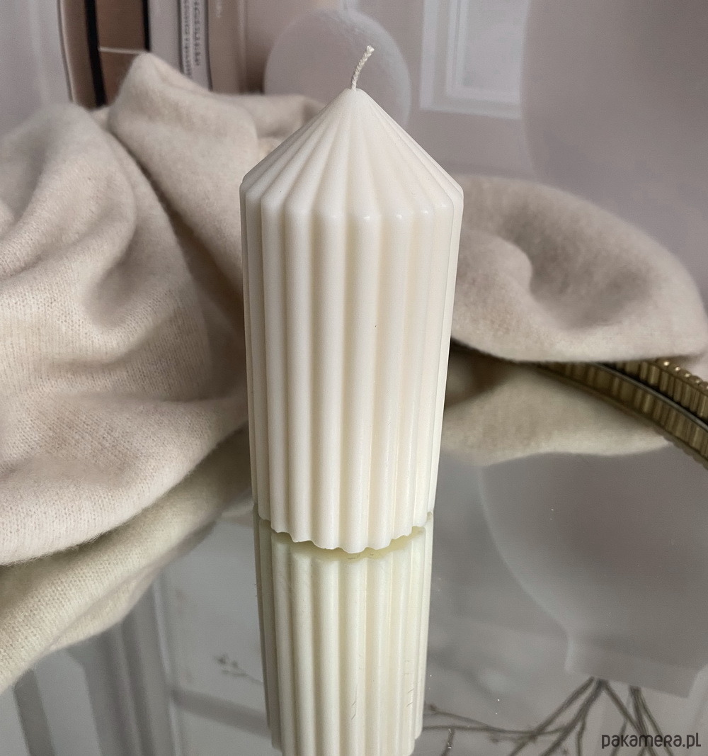 Nowoczesna świeca w kształcie walca to połączenie prostoty i designerskiej formy. Rzeźbiarska struktura sprawia że świetnie prezentuje się jako dekoracja- sama w sobie przyciąga wzrok i dodaje charakteru każdej przestrzeni