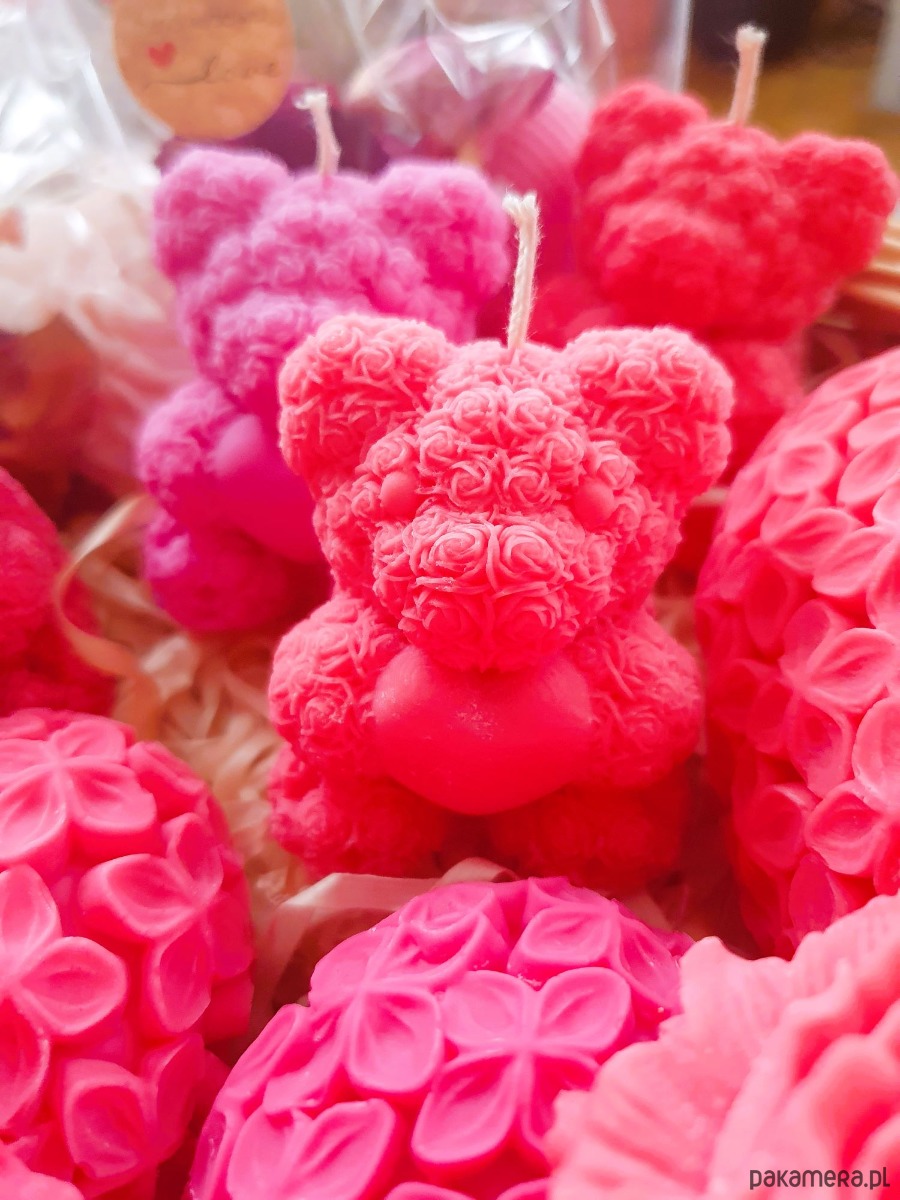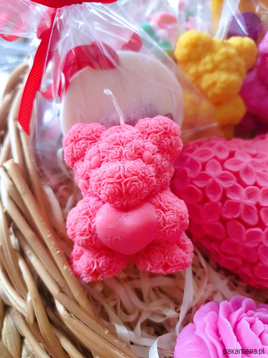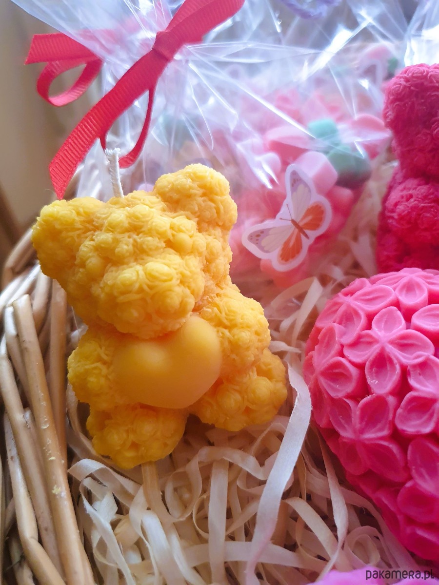 Misiaczek z serduszkiem - świeca wykonana z wosku sojowego.