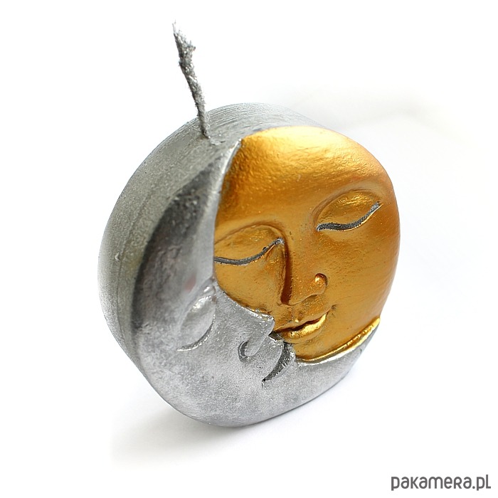 złoto - srebrna świeca wizerunkowa słońce i księżyc z naturalnego wosku, wysokoenergetyczna i wykonana z miłością. Doskonale jonizuje powietrze, oczyszcza negatywne emocje i niweluje elektromagnetyczny smog. Każda świeca wykonywana jest od początku do końca ręcznie.