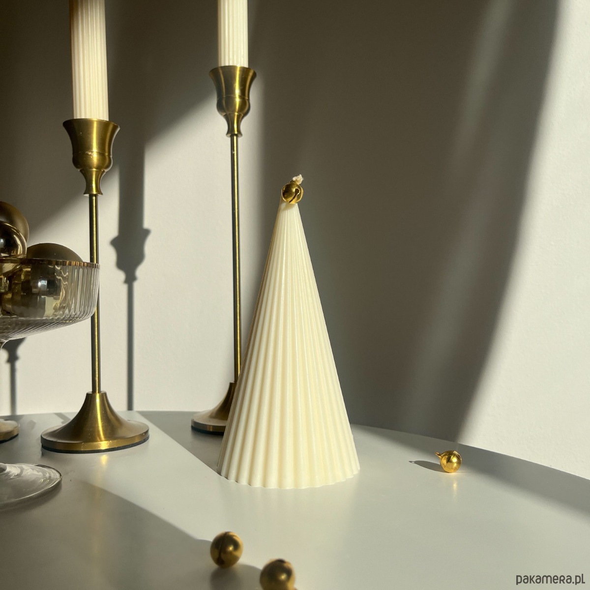 Świąteczna świeca w kształcie stożkowej choinki to klimatyczne uzupełnienie świątecznego wystroju!