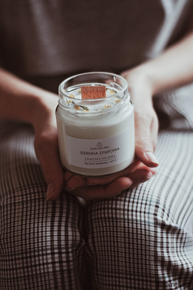 Zanurz się w ciepłym, relaksującym zapachu "Jesiennej Symfonii" – ręcznie robionej świeczki sojowej stworzonej w 100% z naturalnych olejków eterycznych. Ogrzewające nuty paczuli, lawendy, geranium, drzewa herbacianego i pomarańczy otulą Twoje zmysły, pomagając się wyciszyć i odprężyć podczas chłodnych, jesiennych wieczorów.