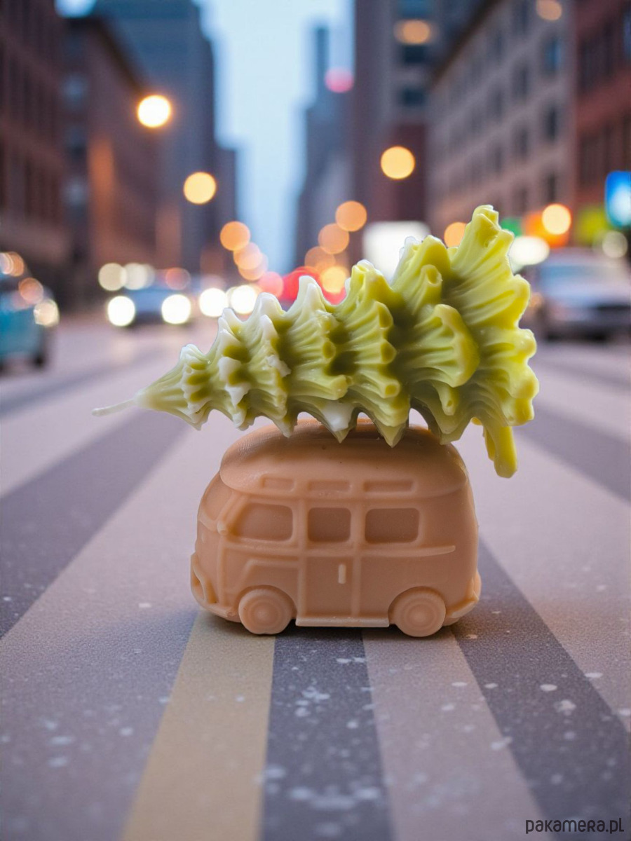 Świeczka sojowa w kształcie autobusu z choinką na dachu– dla tych, którzy kochają podróże i miejskie przygody w wydaniu świątecznym! Ten unikalny dodatek wniesie odrobinę nostalgii i ciepła do Twojego wnętrza. Wykonana z naturalnego wosku sojowego, przyjazna środowisku, łączy oryginalny design z wyjątkowym klimatem. Zapal ją i daj się zabrać w sentymentalną podróż bez wychodzenia z domu.