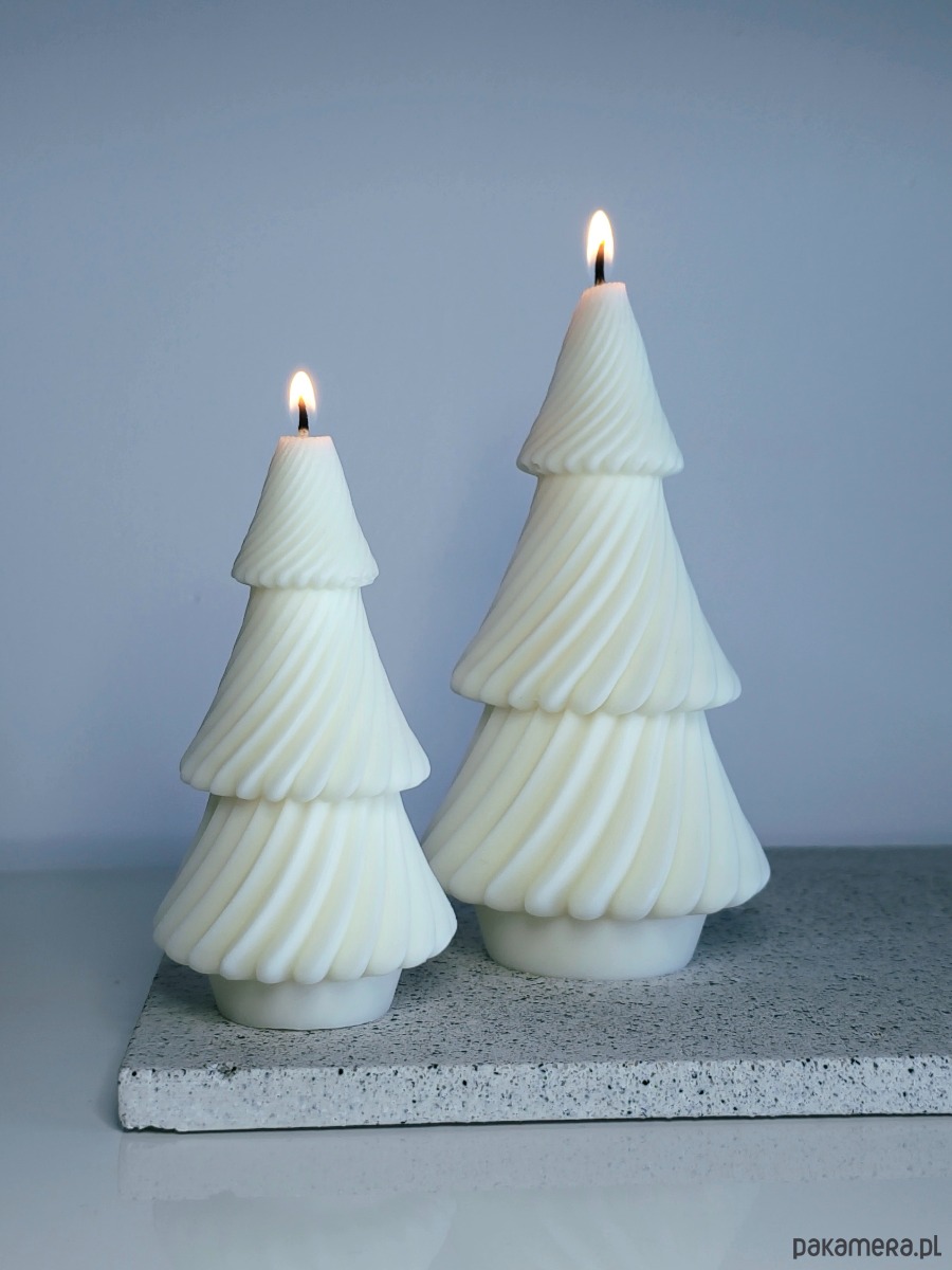 Świeca choinka kręcona to ręcznie wykonana dekoracja z naturalnego wosku sojowego. Jej spiralny, dynamiczny kształt przypomina drzewko oplecione świetlnym łańcuchem, wprowadzając do wnętrza zimową magię. Idealna na stół, komodę czy kominek, a także jako elegancki dodatek do prezentu.