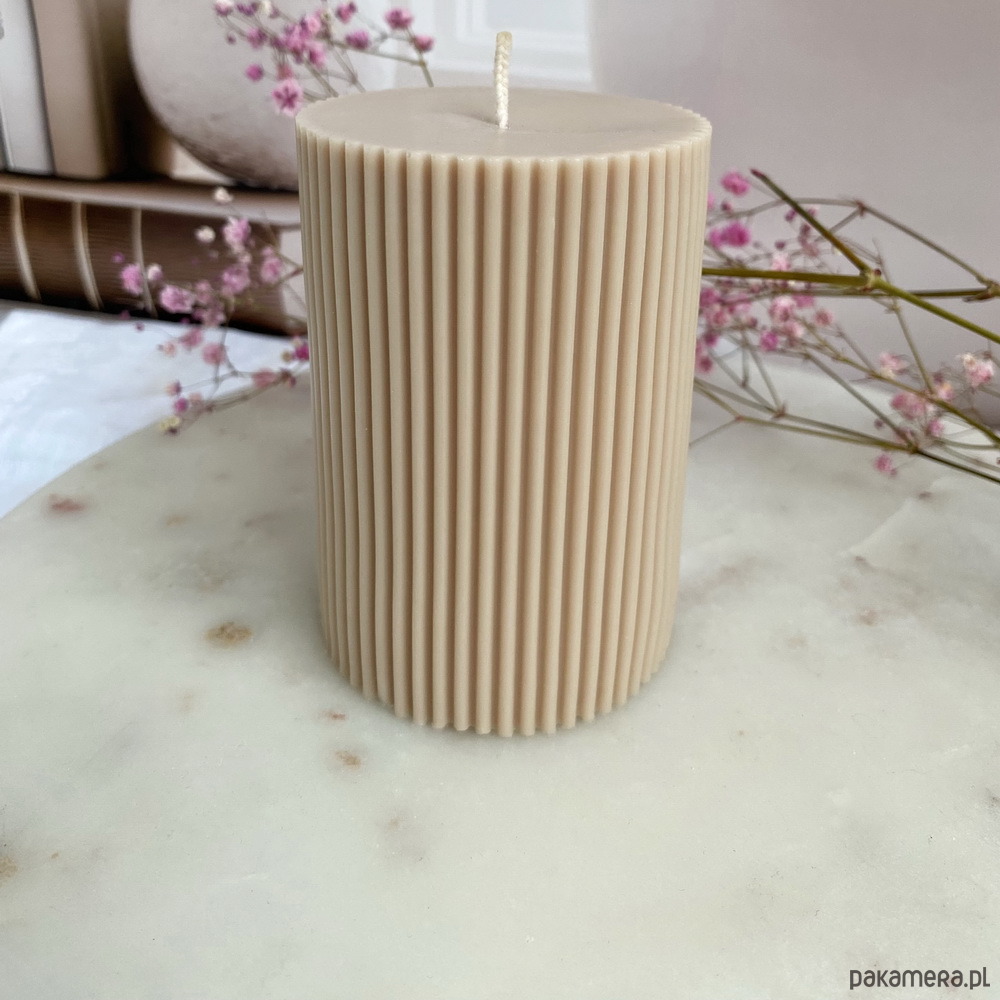 Nowoczesna świeca w kształcie walca to połączenie prostoty i designerskiej formy. Rzeźbiarska struktura sprawia że świetnie prezentuje się jako dekoracja- sama w sobie przyciąga wzrok i dodaje charakteru każdej przestrzeni