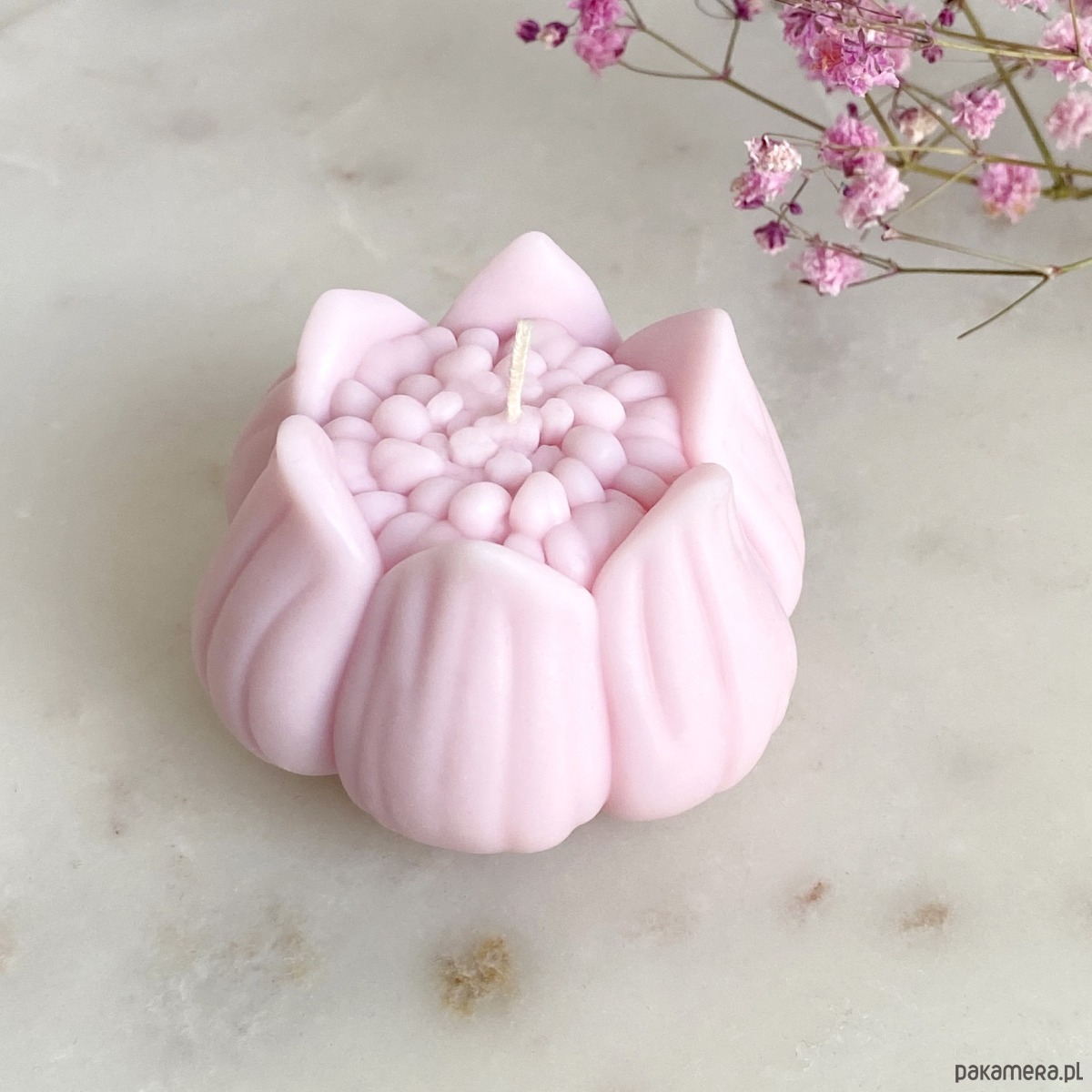 Wprowadź do swojego wnętrza subtelny akcent natury, dzięki naszej ręcznie wykonanej świecy sojowej w kształcie kwiatka. Jej delikatna forma i rózowy odcień sprawia, że doskonale komponuje się w różnorodnymi stylami aranżacji- od rustykalnych po nowoczesne.