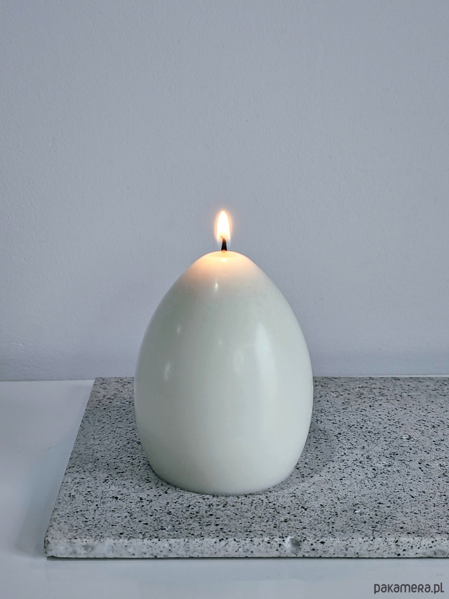 Klasyczna świeca w kształcie jajka, symbol nowego początku i wiosny. Minimalistyczna dekoracja wielkanocna, która pięknie prezentuje się w każdym wnętrzu.