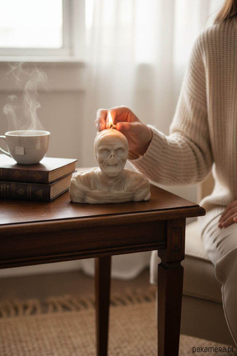 Przedstawiamy naszą dużą mumię – świeczkę, która łączy starożytność z nowoczesnym stylem! Ta tajemnicza figura nie tylko oświetli Twoje wnętrze, ale także przyciągnie uwagę gości. Idealna na wieczory pełne historii i humoru. Kto powiedział, że mumie są tylko w muzeach? Czas na mumiowy blask, który rozjaśni mroki przeszłości i doda odrobinę magii do każdego spotkania!