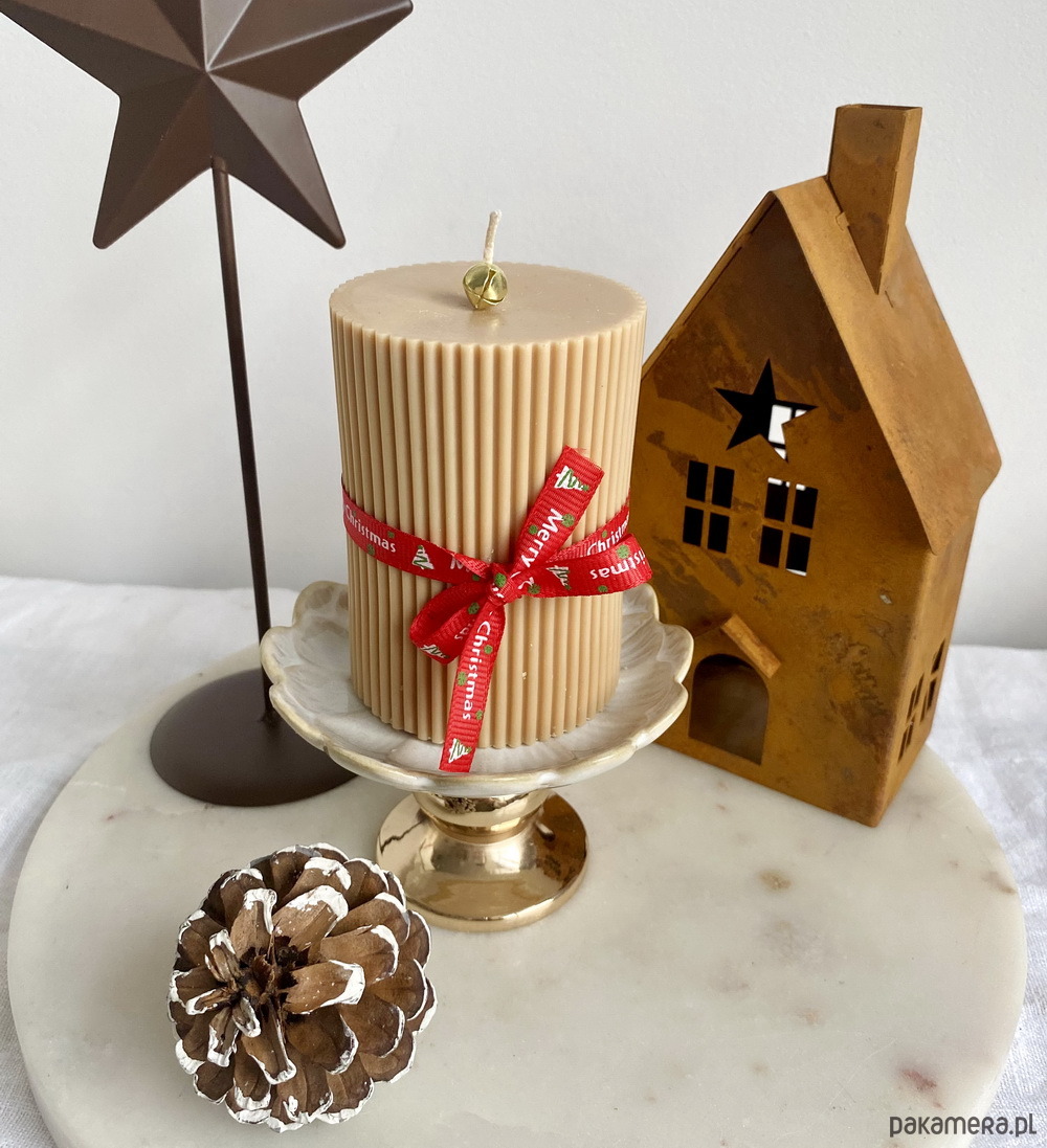 Nowoczesna świeca w kształcie walca to połączenie prostoty i designerskiej formy. Rzeźbiarska struktura sprawia że świetnie prezentuje się jako dekoracja- sama w sobie przyciąga wzrok i dodaje charakteru każdej przestrzeni