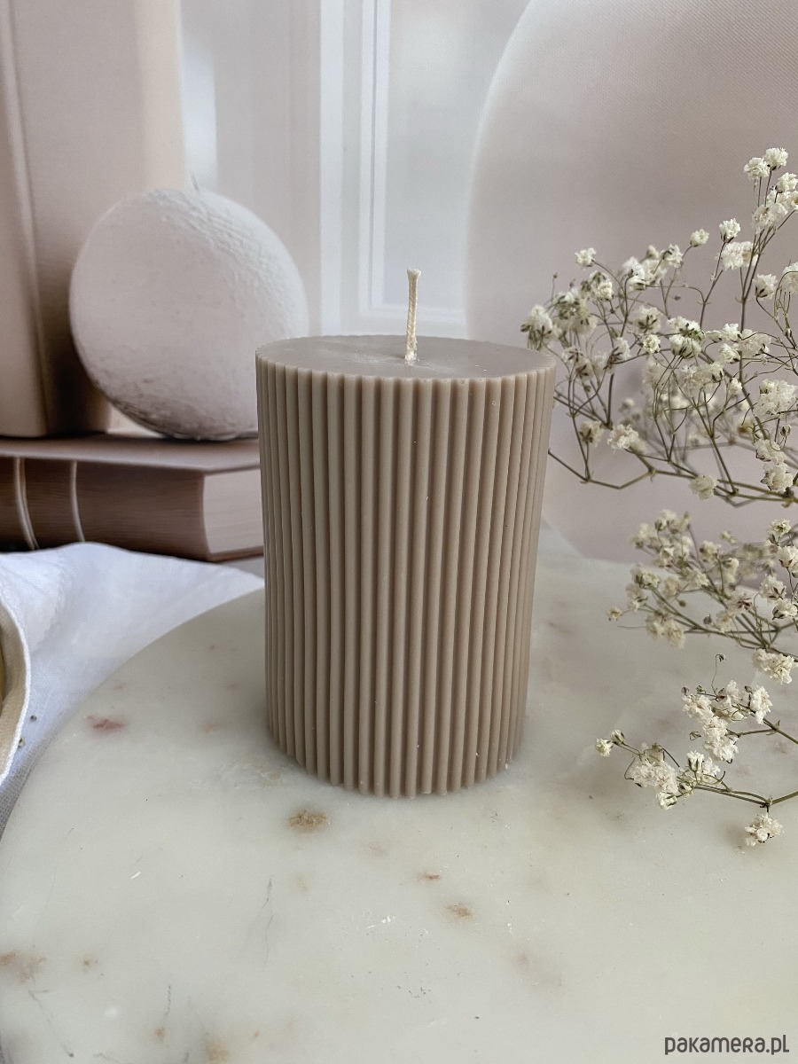 Nowoczesna świeca w kształcie walca to połączenie prostoty i designerskiej formy. Rzeźbiarska struktura sprawia że świetnie prezentuje się jako dekoracja- sama w sobie przyciąga wzrok i dodaje charakteru każdej przestrzeni