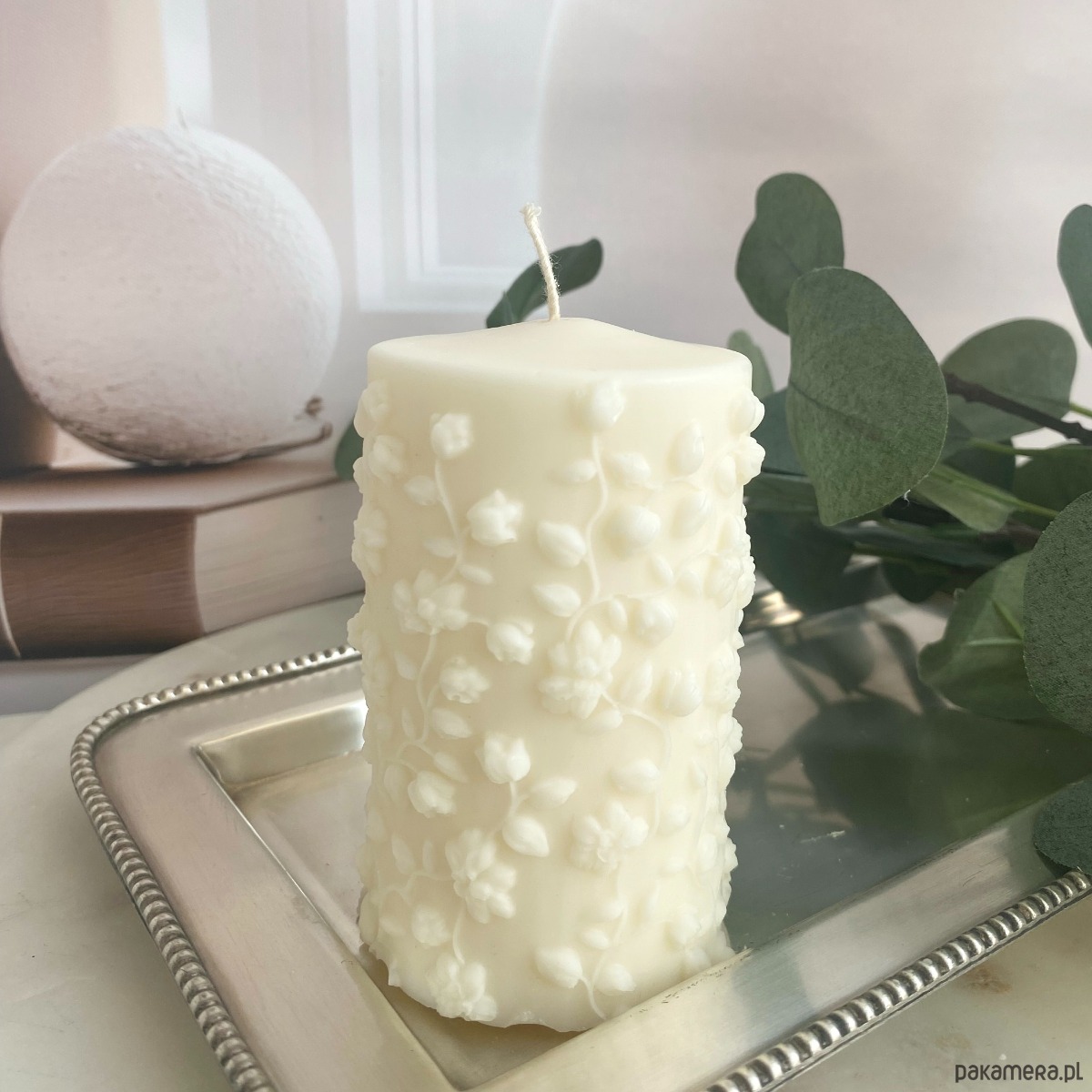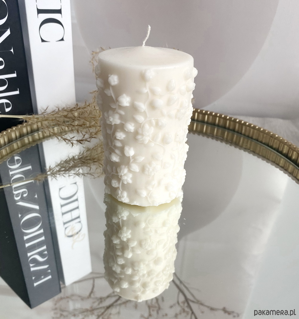 Naturalna świeca sojowa w kształcie eleganckiego walca, ozdobiona delikatnymi, oplatającymi ją kwiatuszkami. Ręcznie wykonana z dbałością o każdy detal- zachwyca subtelną formą i roślinnym urokiem. Idealna jako dekoracja lub prezent, który wnosi do wnętrza spokój i naturalne piękno.