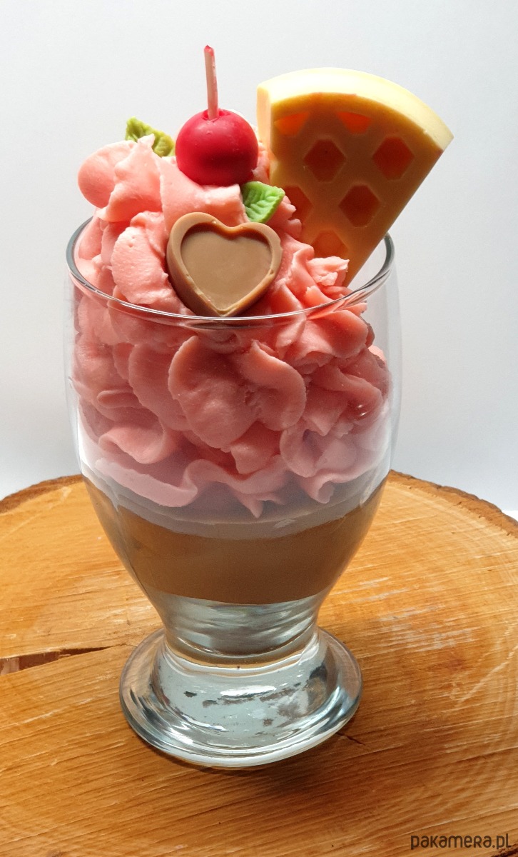 Świeca sojowa - deser truskawkowy z gofrem