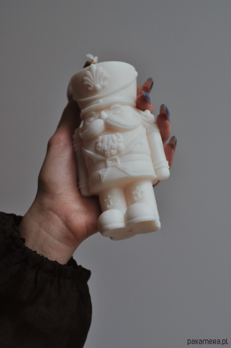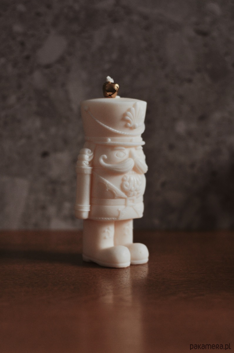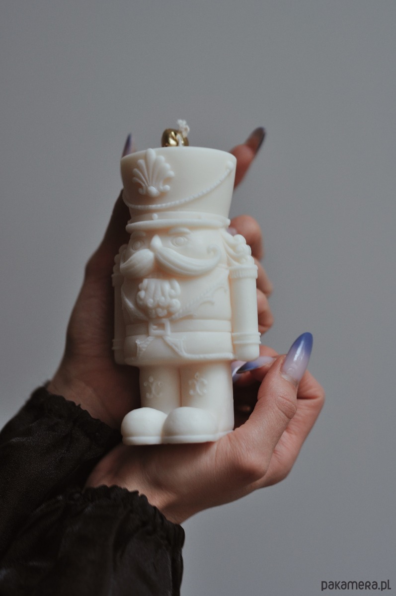 Świeczka wolnostojąca w magicznym kształcie dziadka do orzechów! Świąteczna świeczka wykonana z wosku sojowego idealnie wpisze się w świąteczny klimat. Wykończona niebielonym knotem bawełnianym. Każda świeczka wykonywana jest ręcznie!