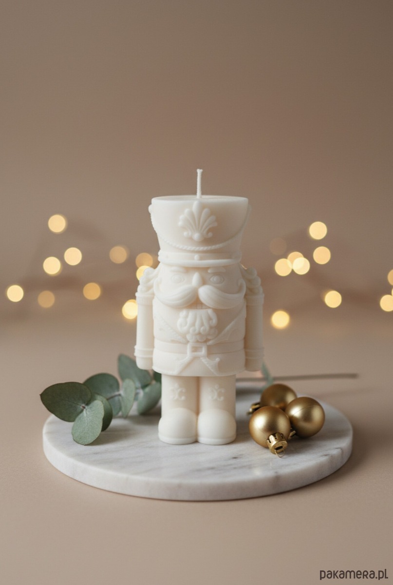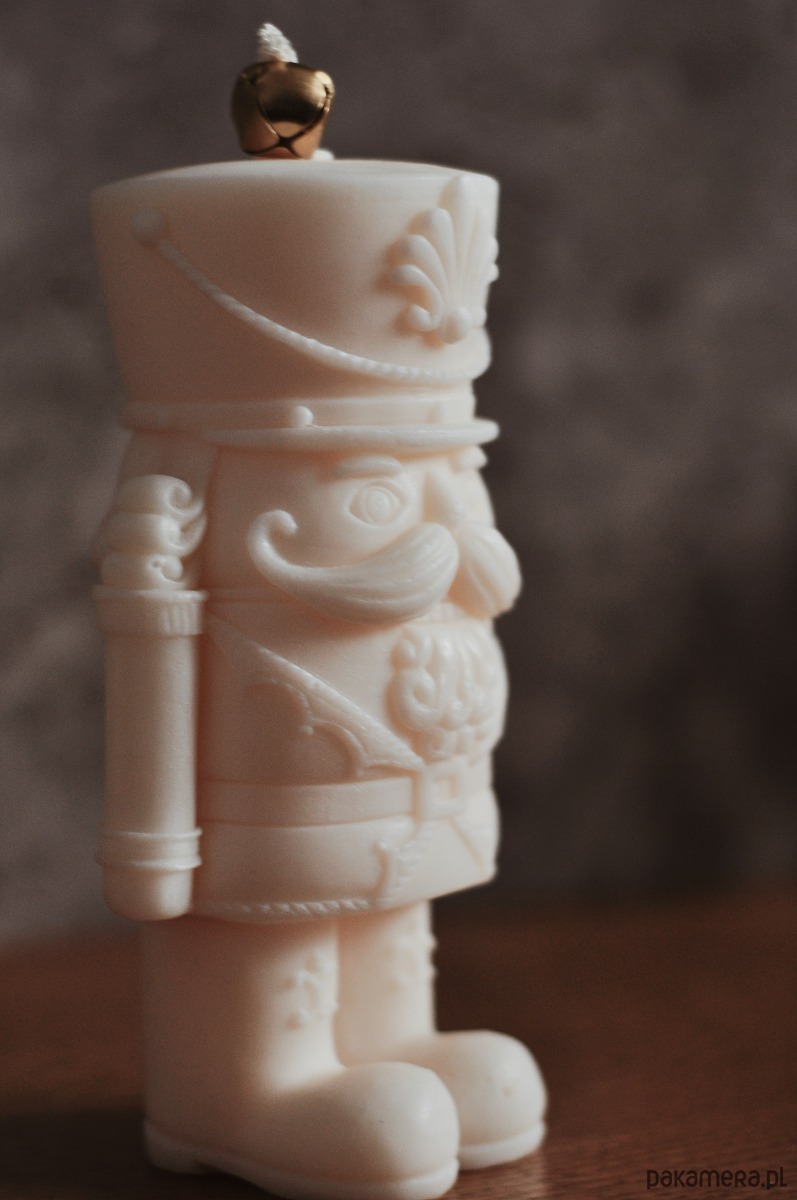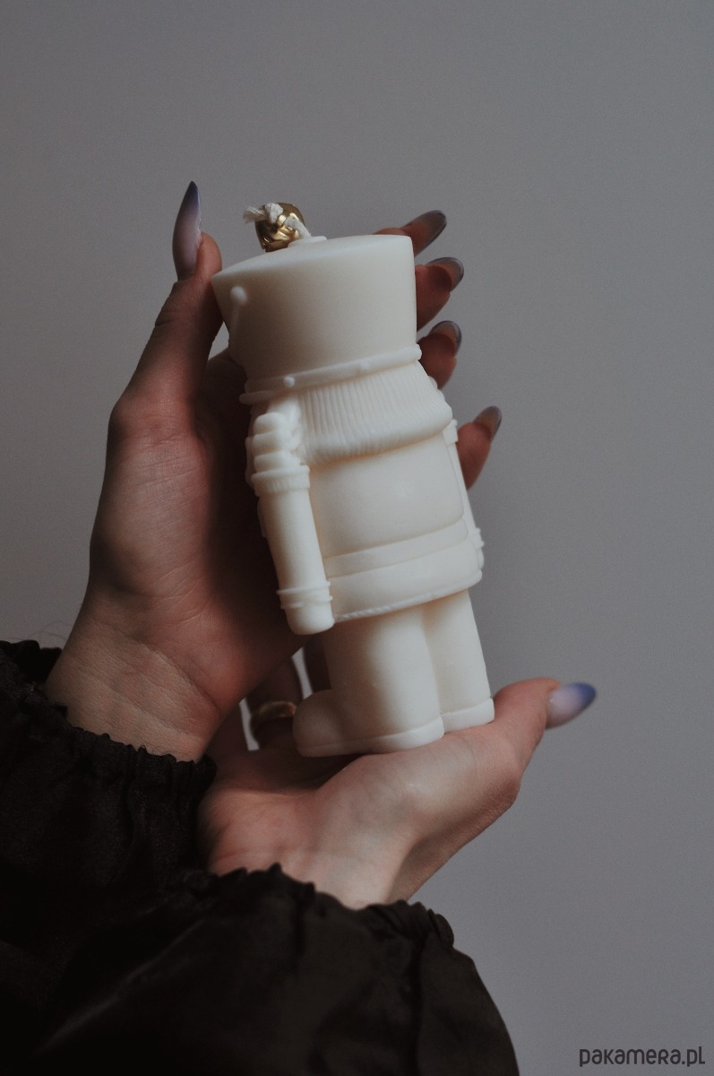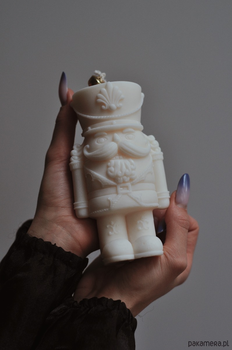 Świeczka wolnostojąca w magicznym kształcie dziadka do orzechów! Świąteczna świeczka wykonana z wosku sojowego idealnie wpisze się w świąteczny klimat. Wykończona niebielonym knotem bawełnianym. Każda świeczka wykonywana jest ręcznie!