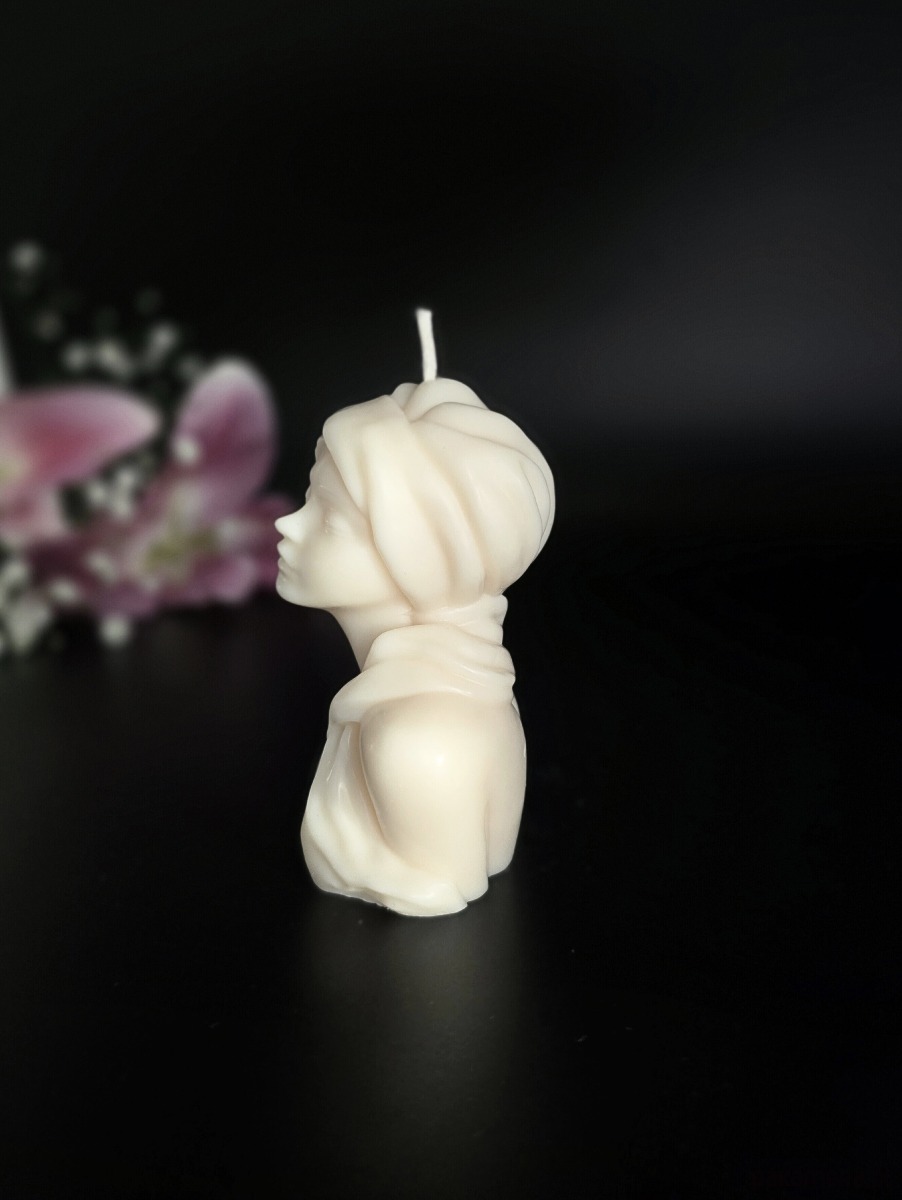 Ręcznie robiona świeca sojowa w kształcie kobiety z turbanem to połączenie subtelnej sztuki i naturalnego rzemiosła. Inspirowana kobiecą siłą, spokojem i autentycznym pięknem, stanowi wyjątkowy element dekoracyjny każdego wnętrza.